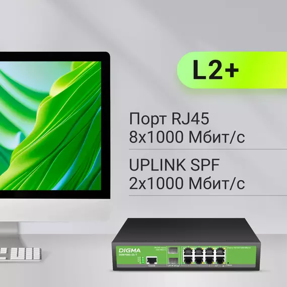 Коммутатор Digma DSW708G-2S-T (L2+) 8x1Гбит/с 2SFP управляемый