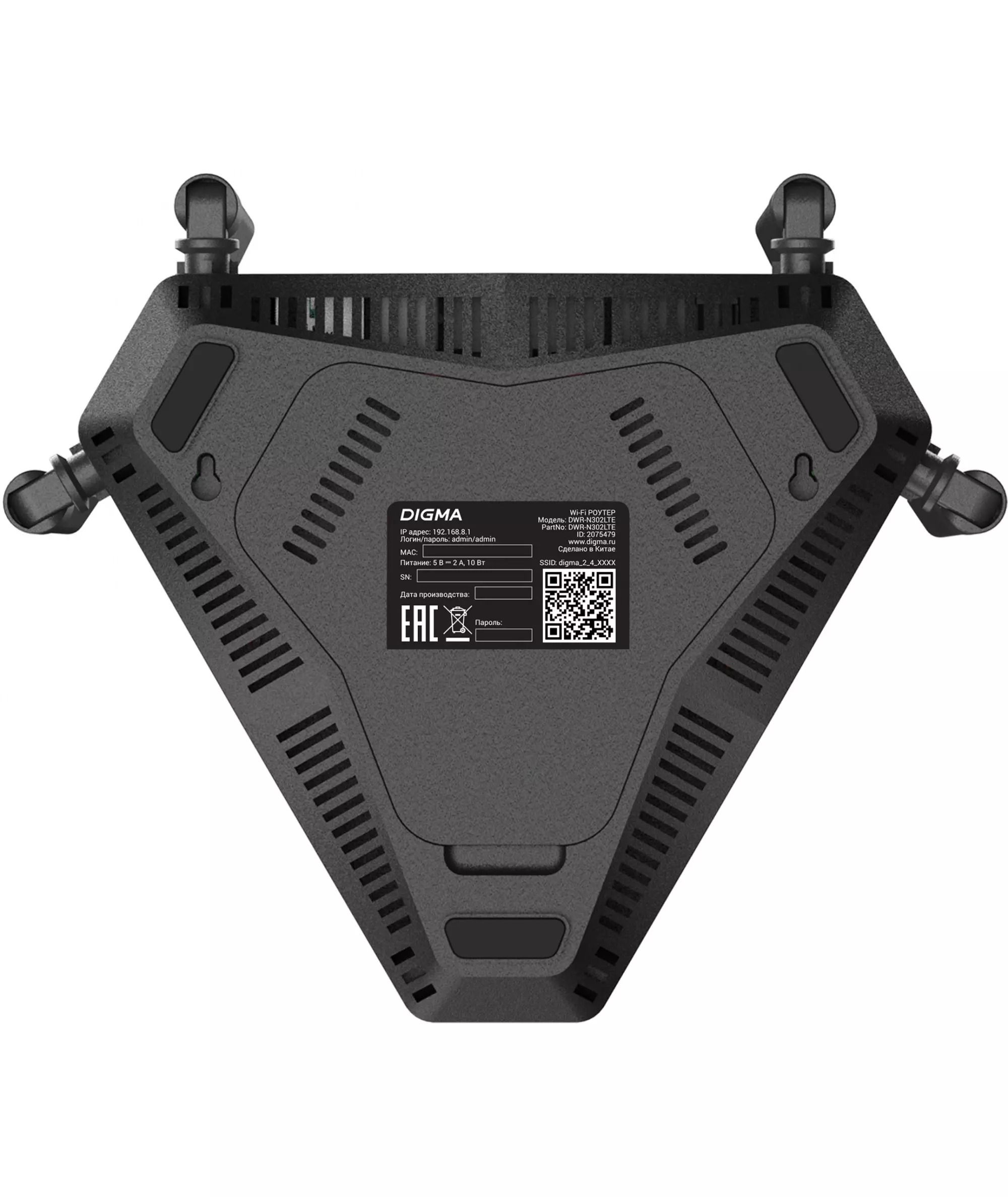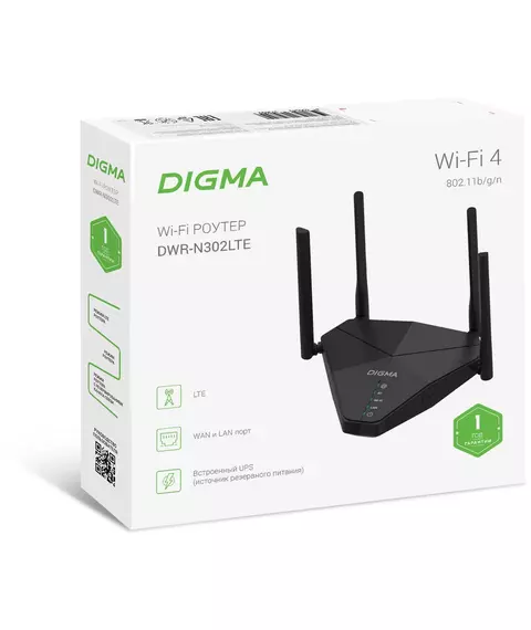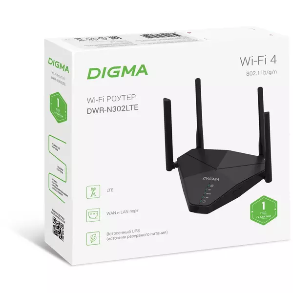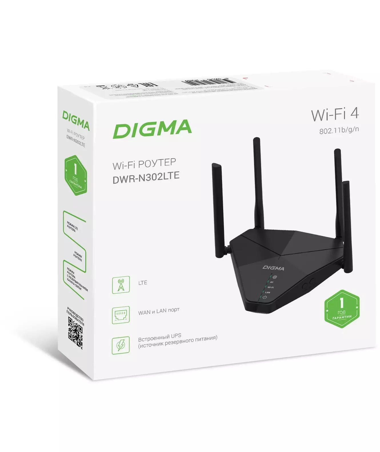 Роутер беспроводной Digma DWR-N302LTE N300 10/100BASE-TX 3G 4G cat. 4 черный