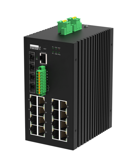 Промышленный коммутатор GL-SW-G207-16P4ST-I – продукт бренда GIGALINK уровня L2+, предназначенный для соединения нескольких устройств локальной вычислительной сети (LAN) или нескольких сегментов данной сети.