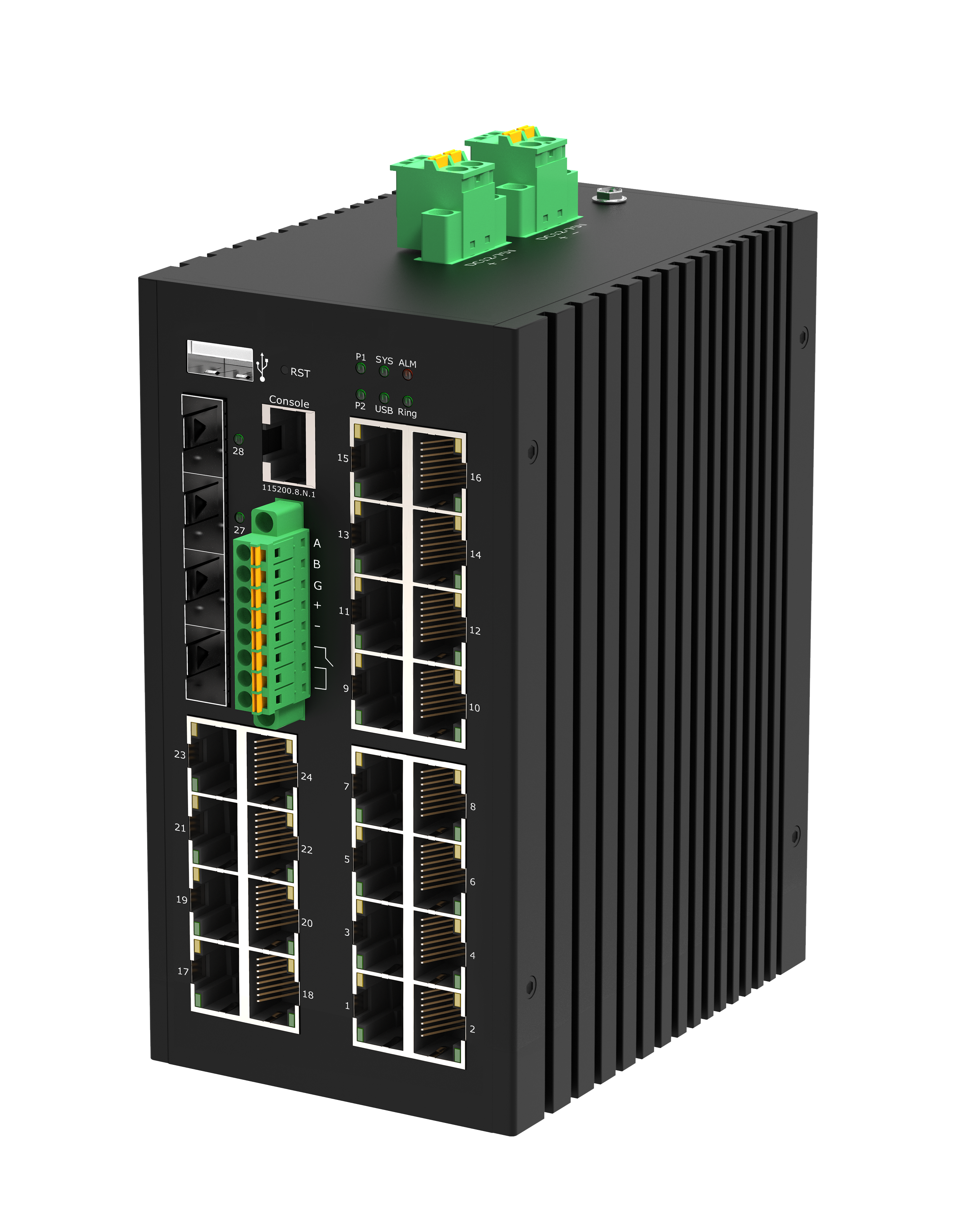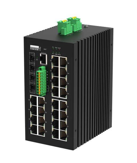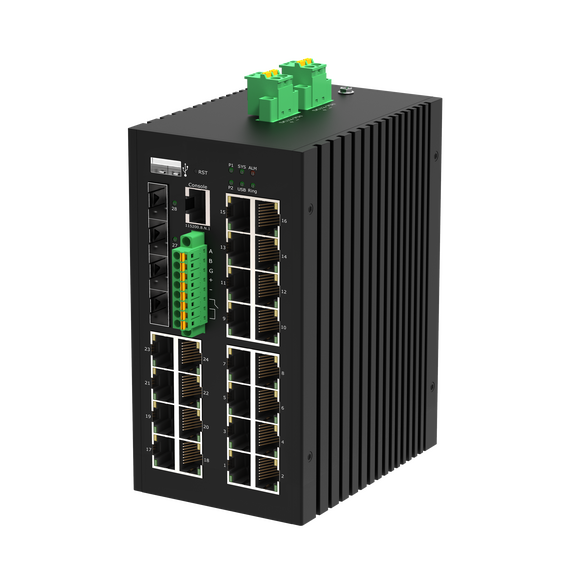 Промышленный коммутатор GL-SW-G307-24P4ST-I – продукт бренда GIGALINK уровня L3, предназначенный для соединения нескольких устройств локальной вычислительной сети (LAN) или нескольких сегментов данной сети.