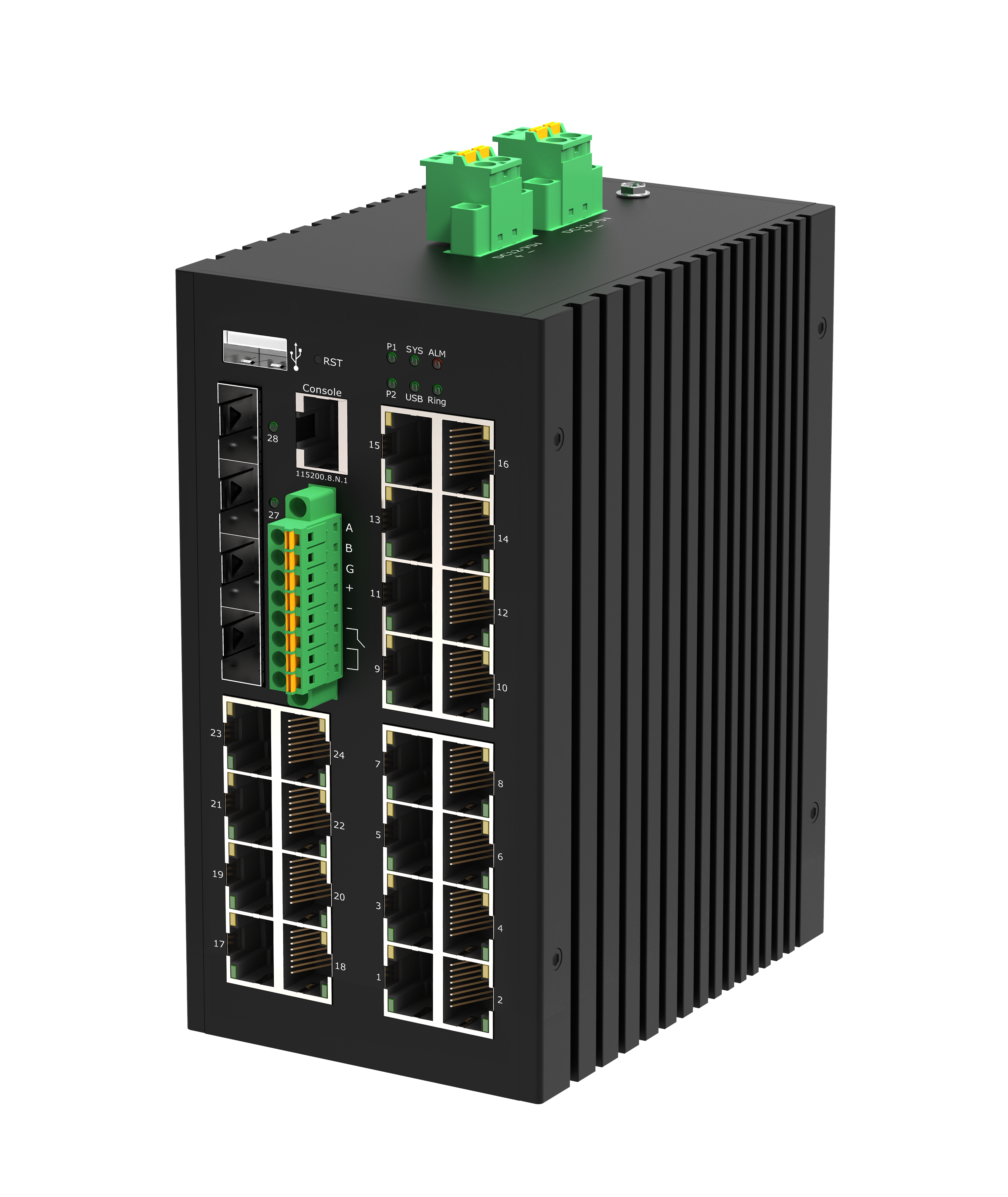 Управляемый промышленный L3 коммутатор Gigalink GL-SW-G307-24P4ST-I 24*10/100/1000Мбит/с PoE (af/at), 4*1/2.5/10Гбит/с SFP+, Крепление на DIN-рейку, 2*ввода питания, питание 44-57В (блок питания 370Вт поставляется отдельно), -40С +70С