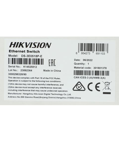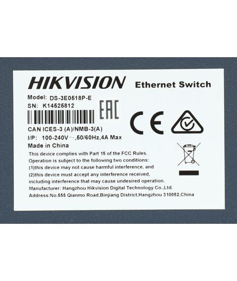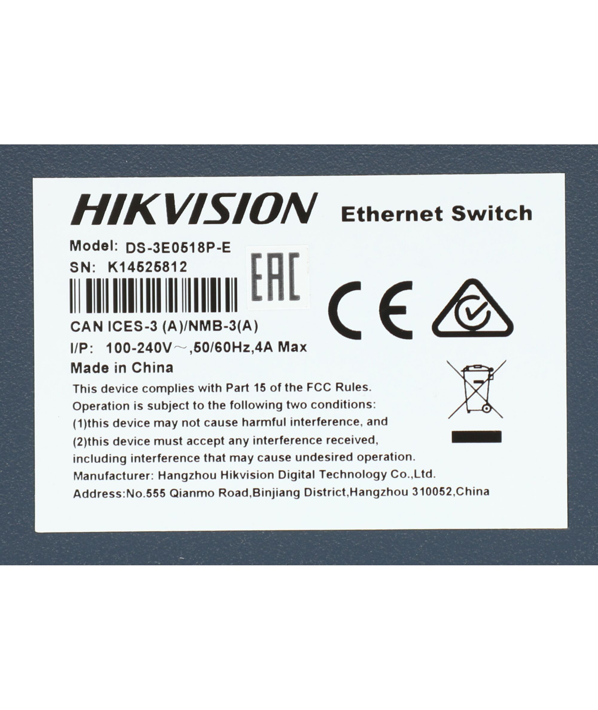 Коммутатор Hikvision DS-3E0518P-E 17x1Гбит/с 1SFP 16PoE+ 230W неуправляемый