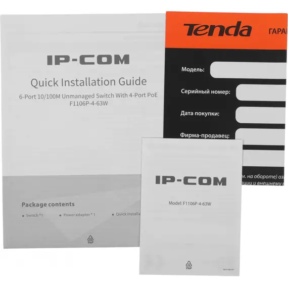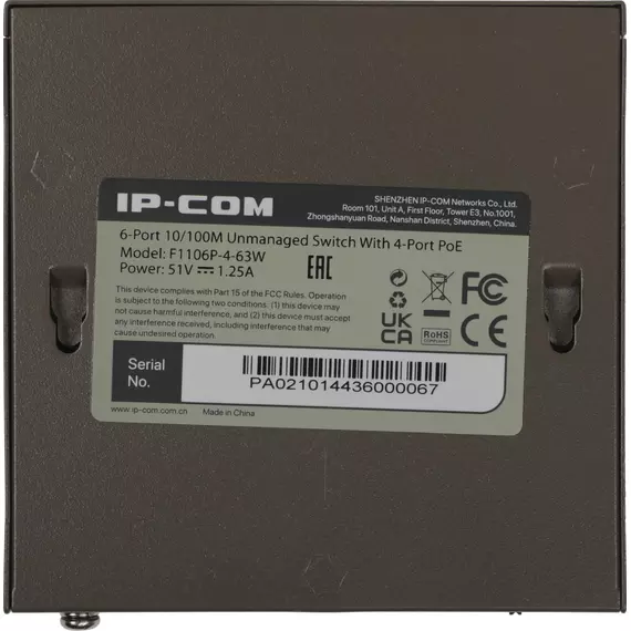 Коммутатор IP-Com F1106P-4-63W (L2) 6x100Мбит/с 4PoE 63W неуправляемый
