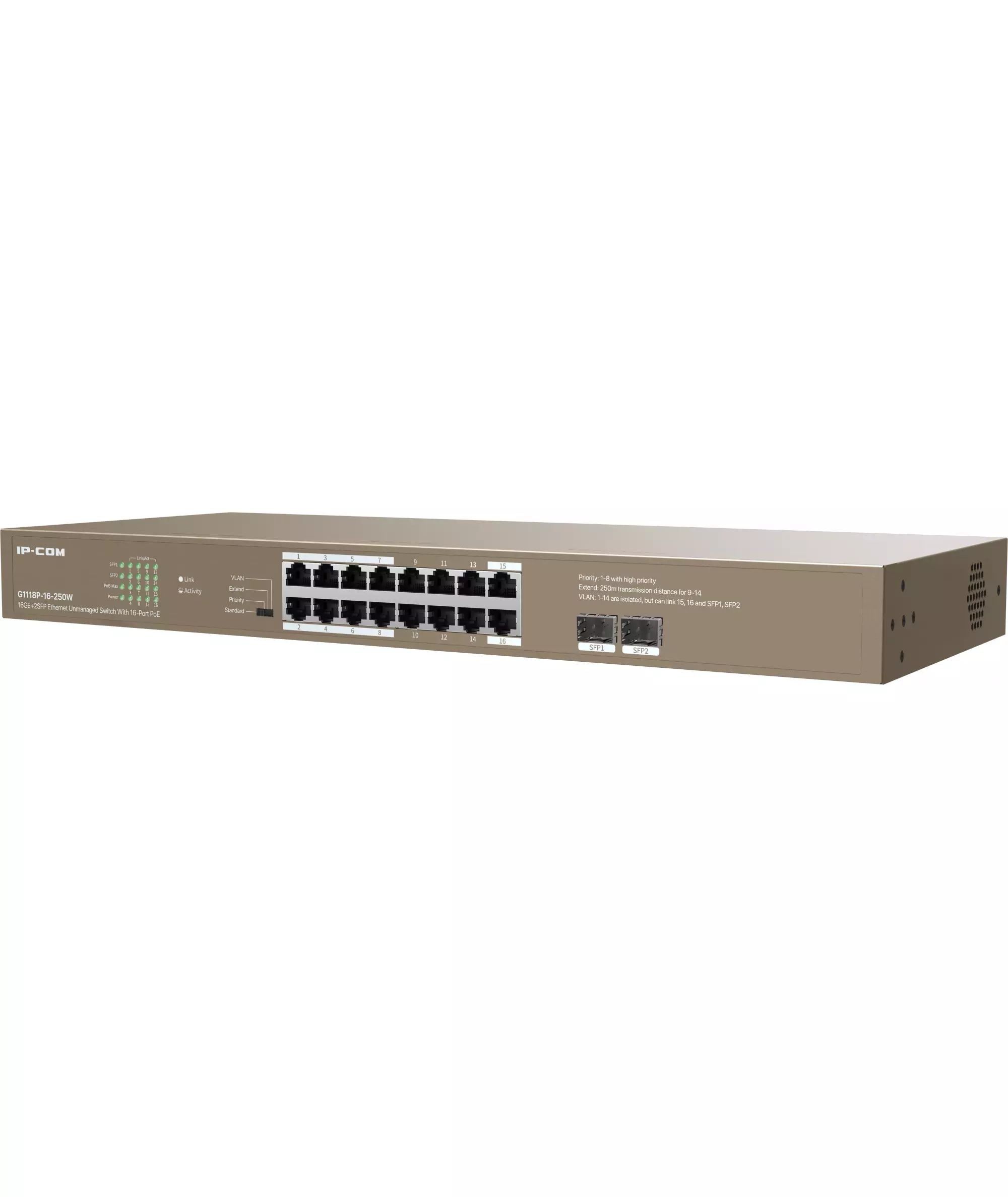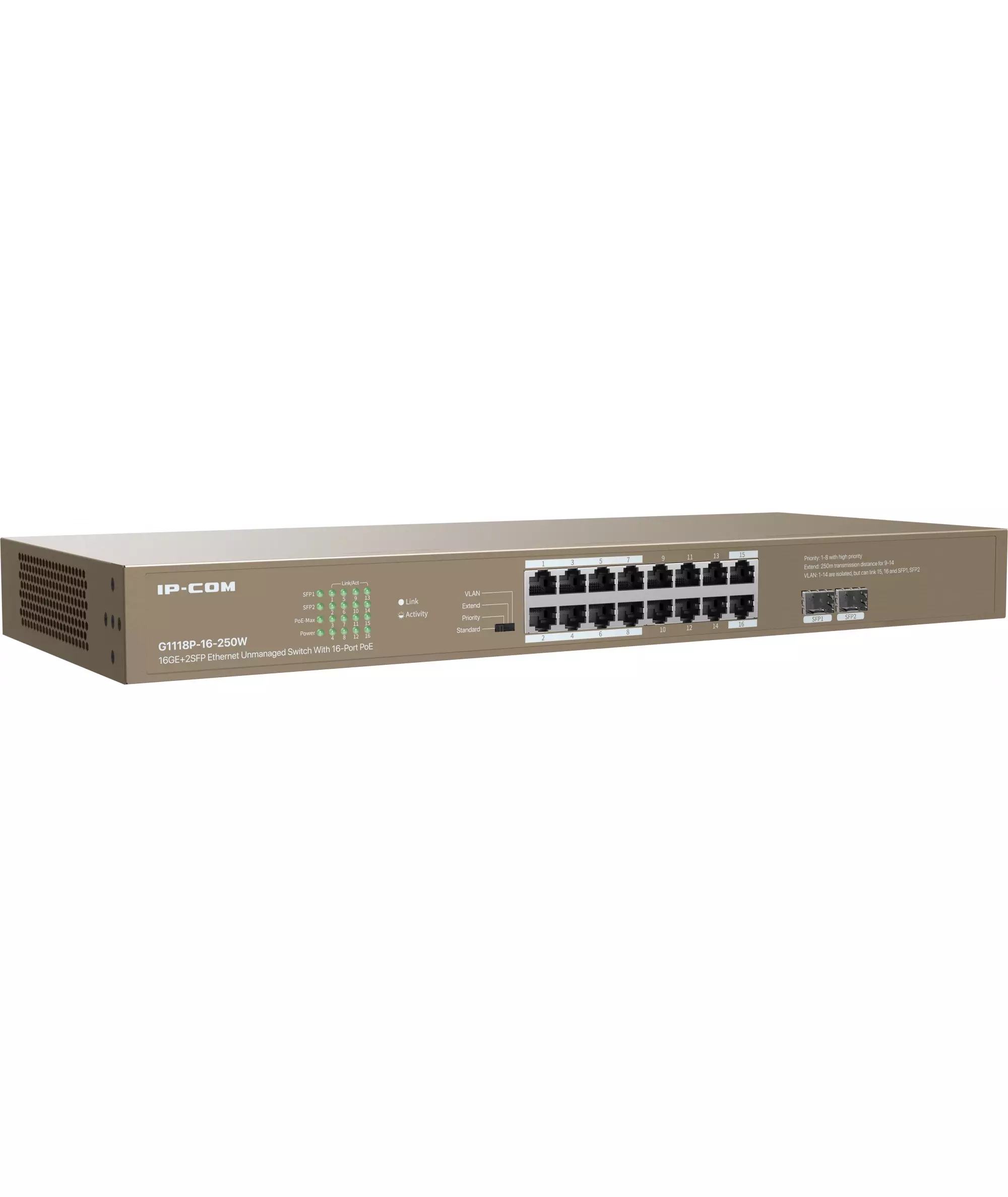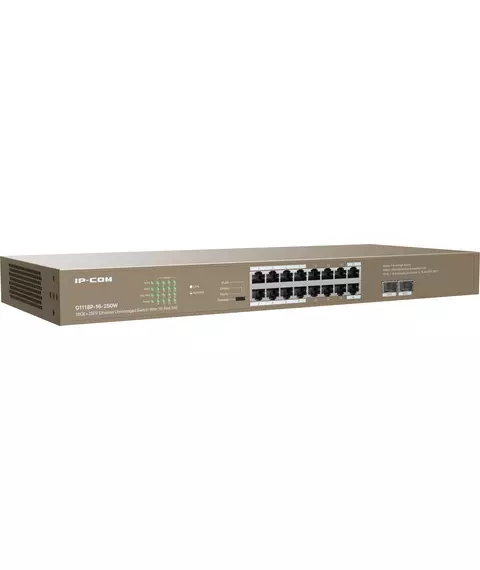 Коммутатор IP-Com G1118P-16-250W (L2) 16x1Гбит/с 2xКомбо(1000BASE-T/SFP) 2SFP 16PoE 230W неуправляемый