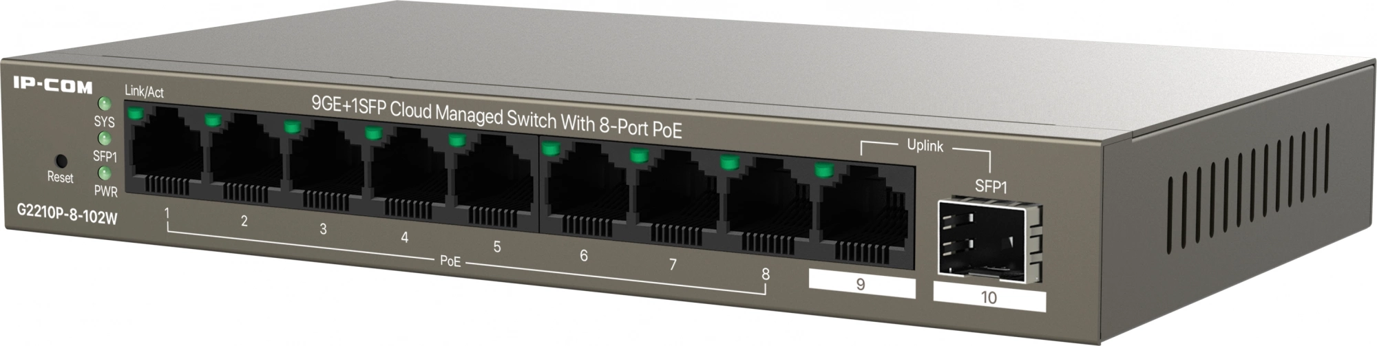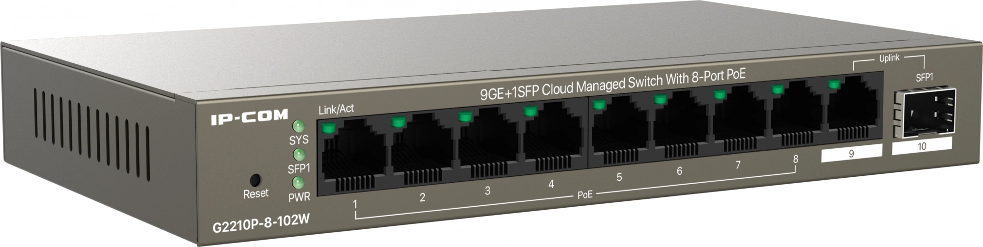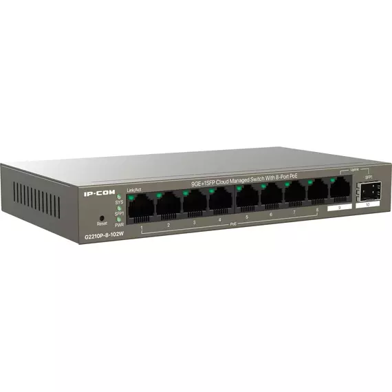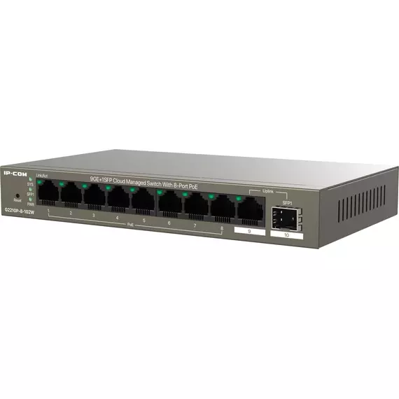 Коммутатор IP-Com G2210P-8-102W (L2) 9x1Гбит/с 1xКомбо(1000BASE-T/SFP) 1SFP 8PoE 92W неуправляемый