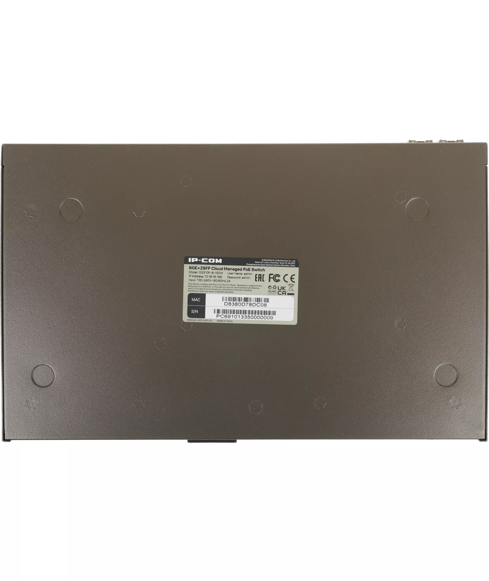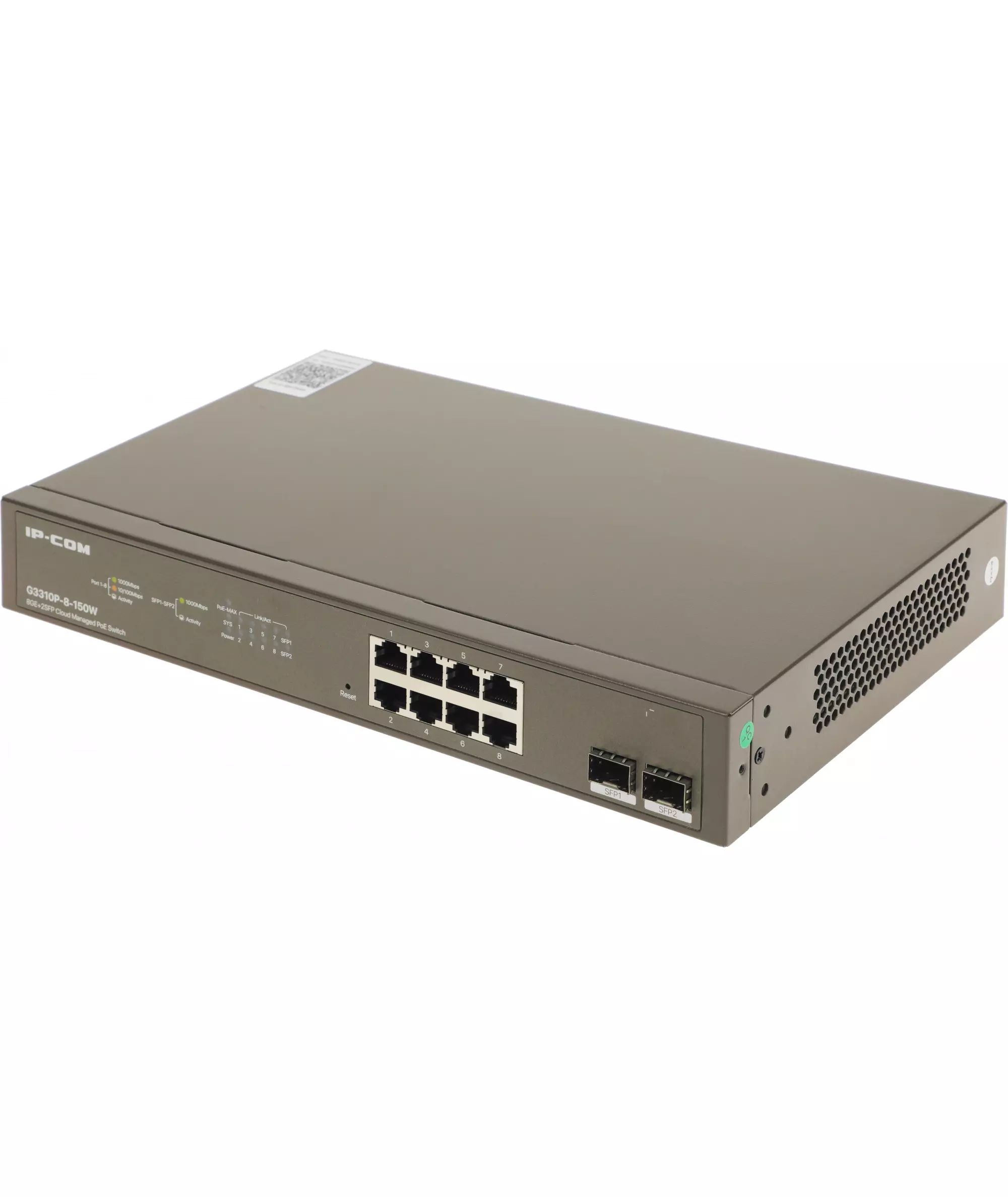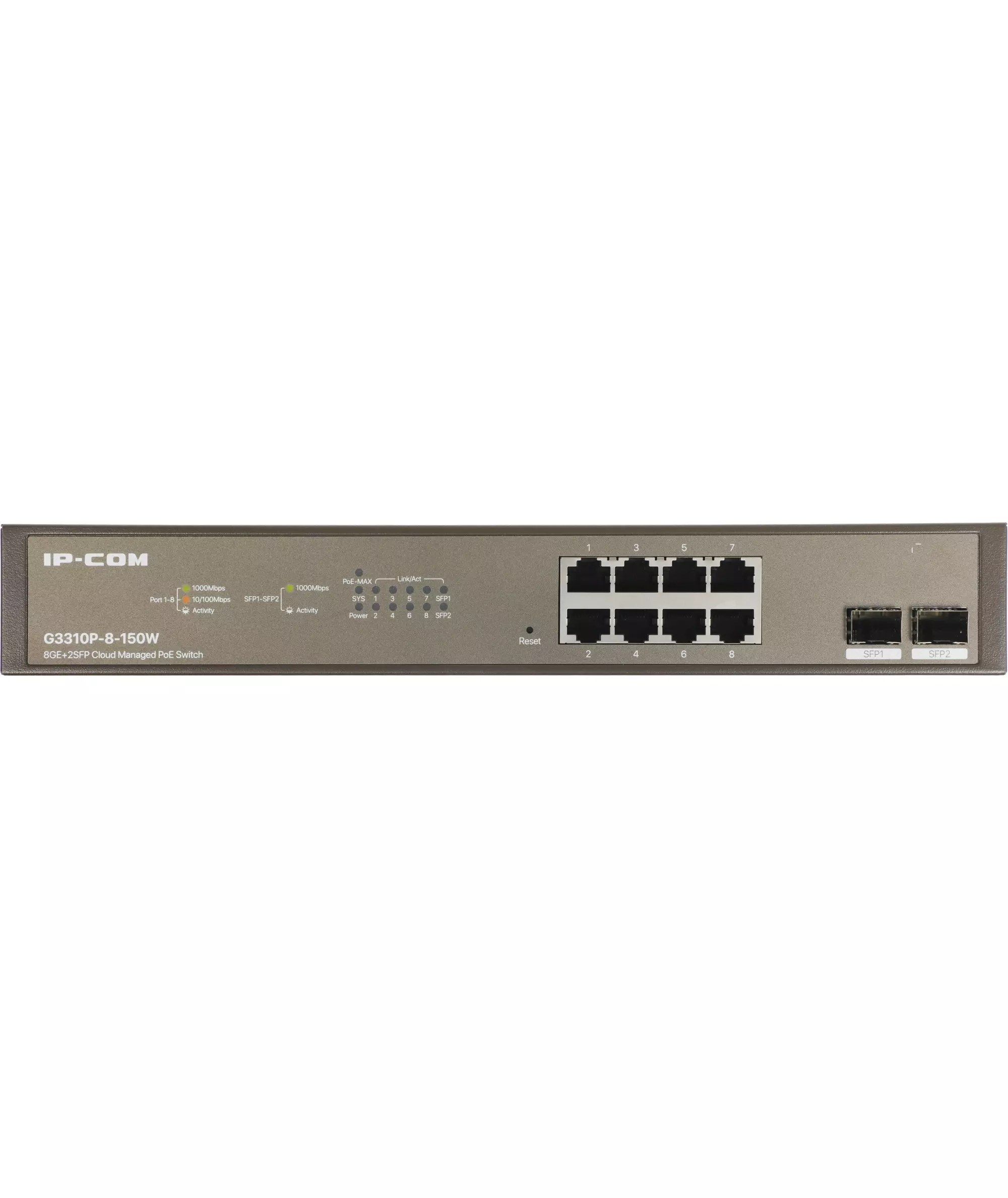 Коммутатор IP-Com G3310P-8-150W (L2) 8x1Гбит/с 2xКомбо(1000BASE-T/SFP) 2SFP 8PoE 130W управляемый