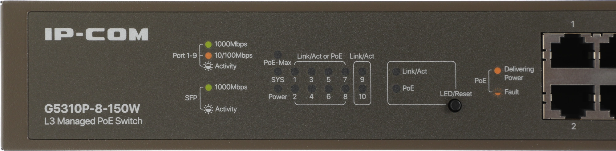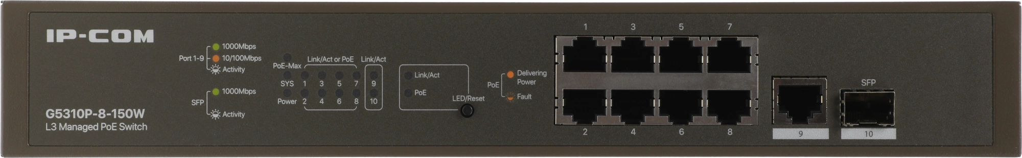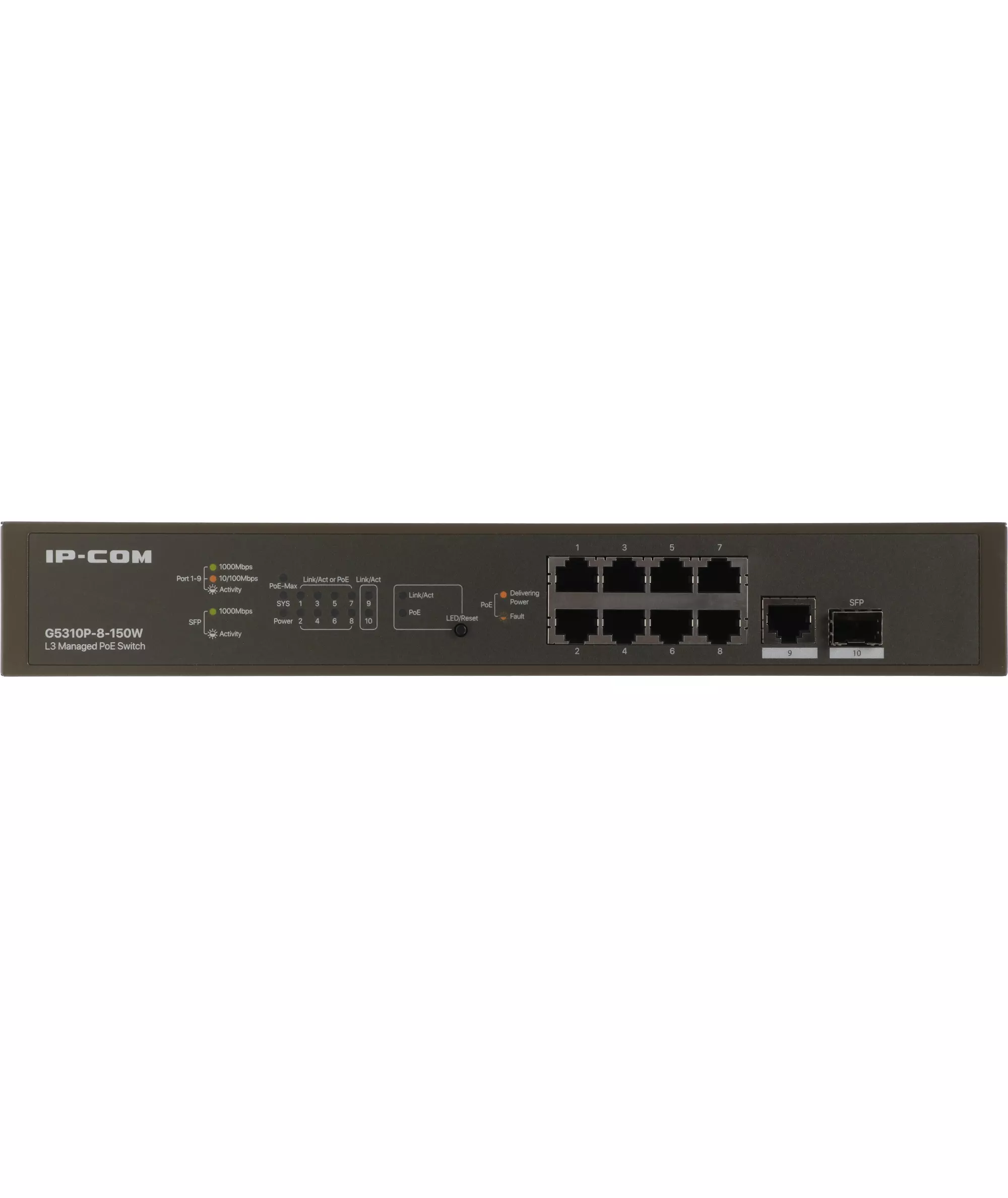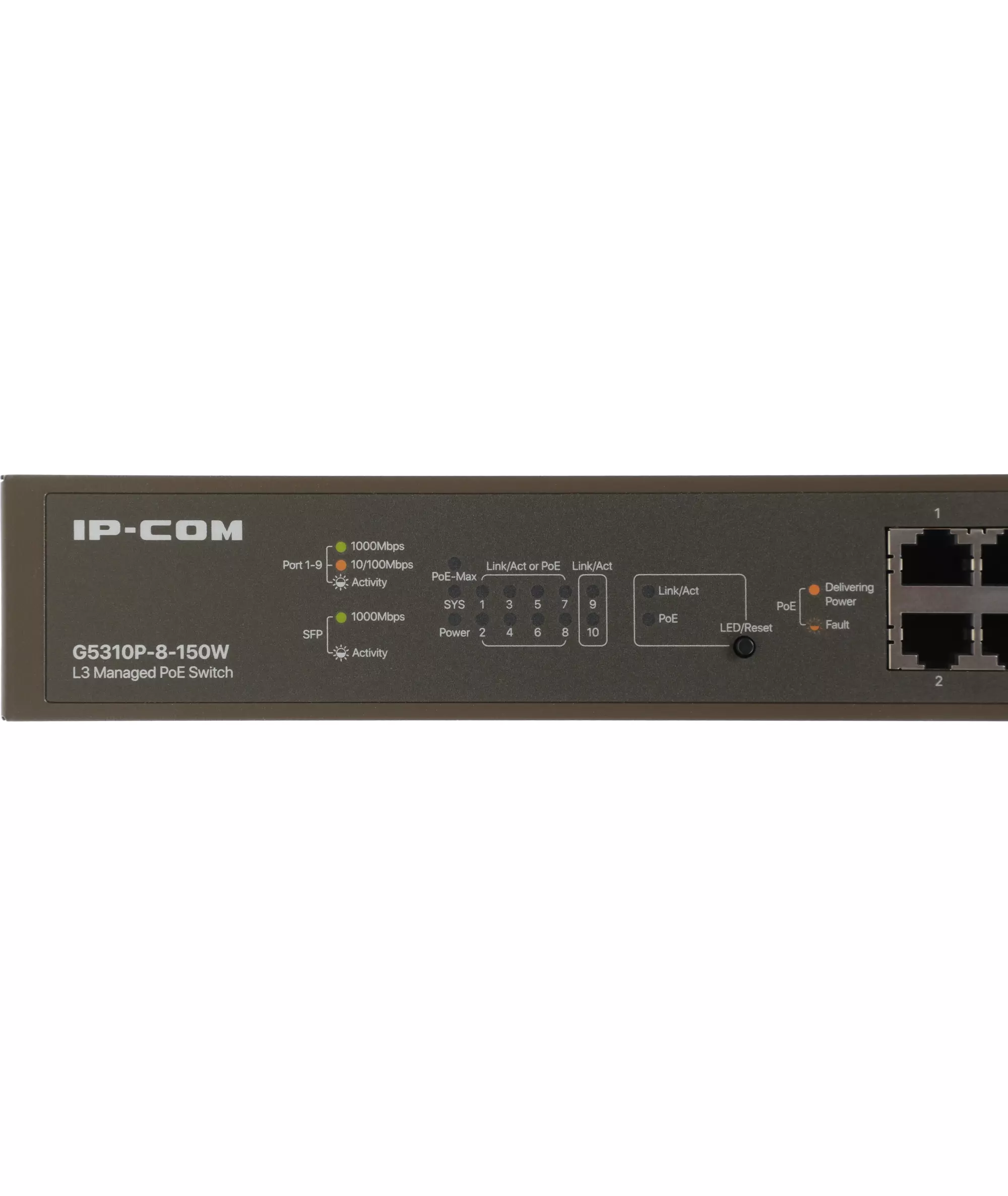 Коммутатор IP-Com G5310P-8-150W (L3) 8x1Гбит/с 1xКомбо(1000BASE-T/SFP) 1SFP 8PoE 130W управляемый