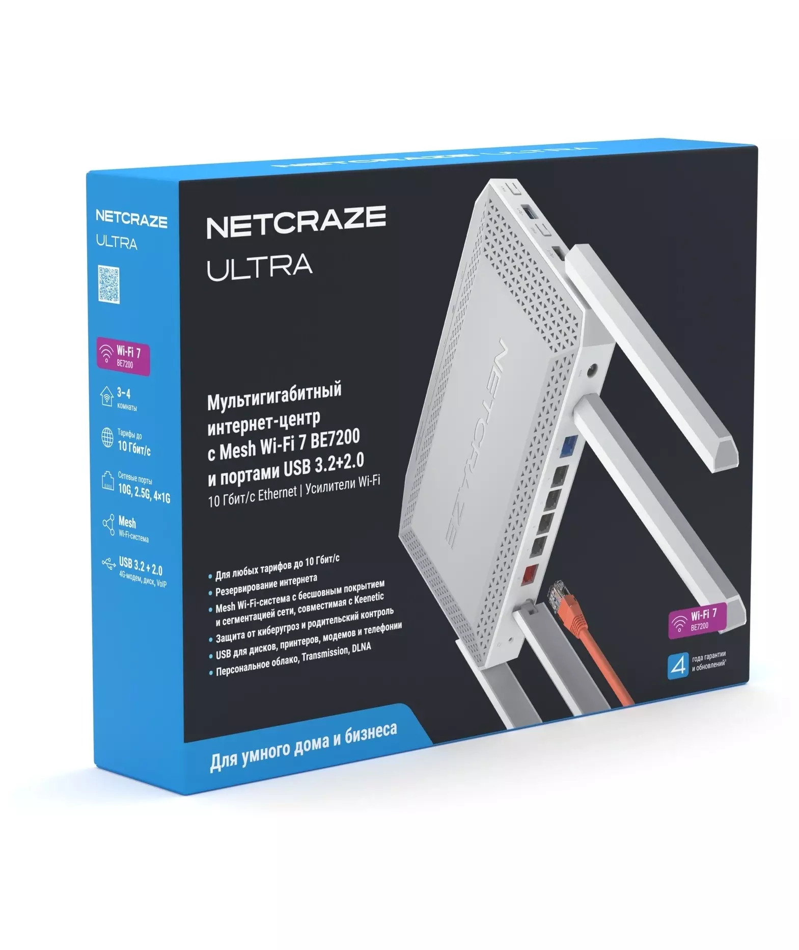 | Комплектация | Wi-Fi роутер KEENETIC Netcraze Ultra, адаптер питания: 12 В 3 A; кабель Ethernet, инструкция по применению. |