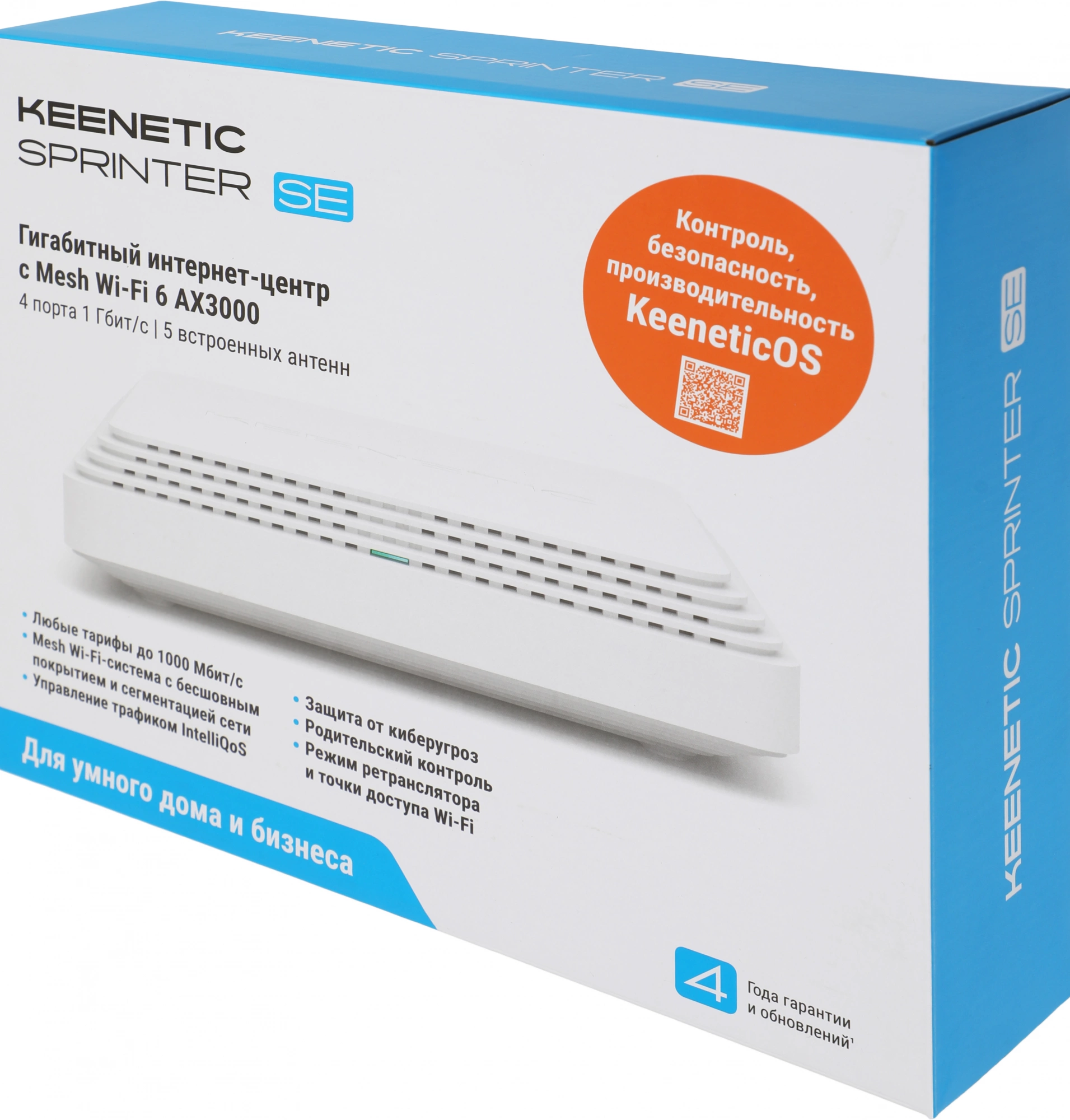 Гигабитный интернет-центр с Mesh Wi-Fi 6 AX3000, 4-портовым Smart-коммутатором и переключателем режима роутер/ретранслятор
