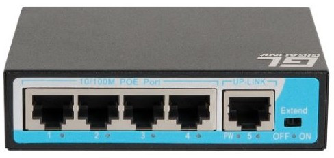 Коммутатор неуправляемый Gigalink GL-SW-F005-04P 4 PoE (802.3af) порта 10/100Мбит/с до 250 метров cat.6, 1 Uplink порт 100Мбит/с, 60Вт