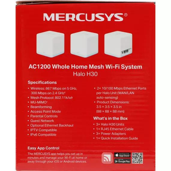 Бесшовный Mesh роутер Mercusys Halo H30(3-pack) AC1200 10/100BASE-TX белый