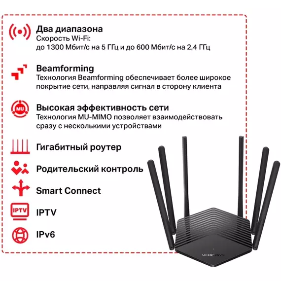 | Поддержка технологий | Beamforming, DHCP-сервер, Dynamic DNS (DDNS), QoS, UPnP, WPS, поддержка IPTV, протокол IPv6 |