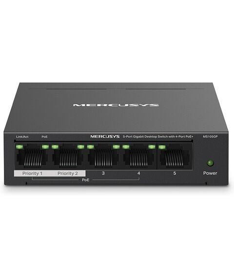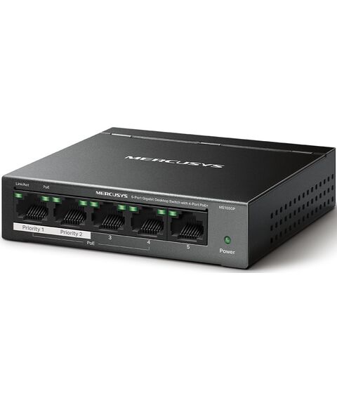 Коммутатор Mercusys MS105GP 5-Port Gigabit, 4-Port PoE+, 1 Gigabit Non-PoE