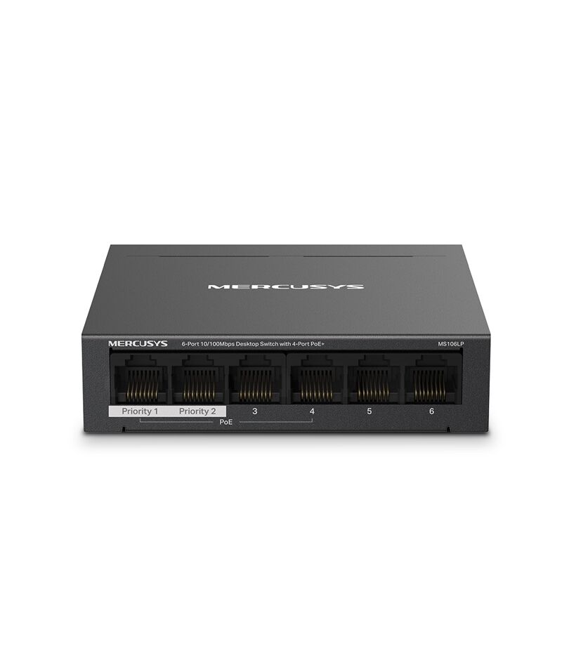 Коммутатор Mercusys MS106LP 6-Port 10/100 Mbps, 4-Port PoE+ 10/100 Mbps, 2x10/100 Mbps Non-PoE Ports