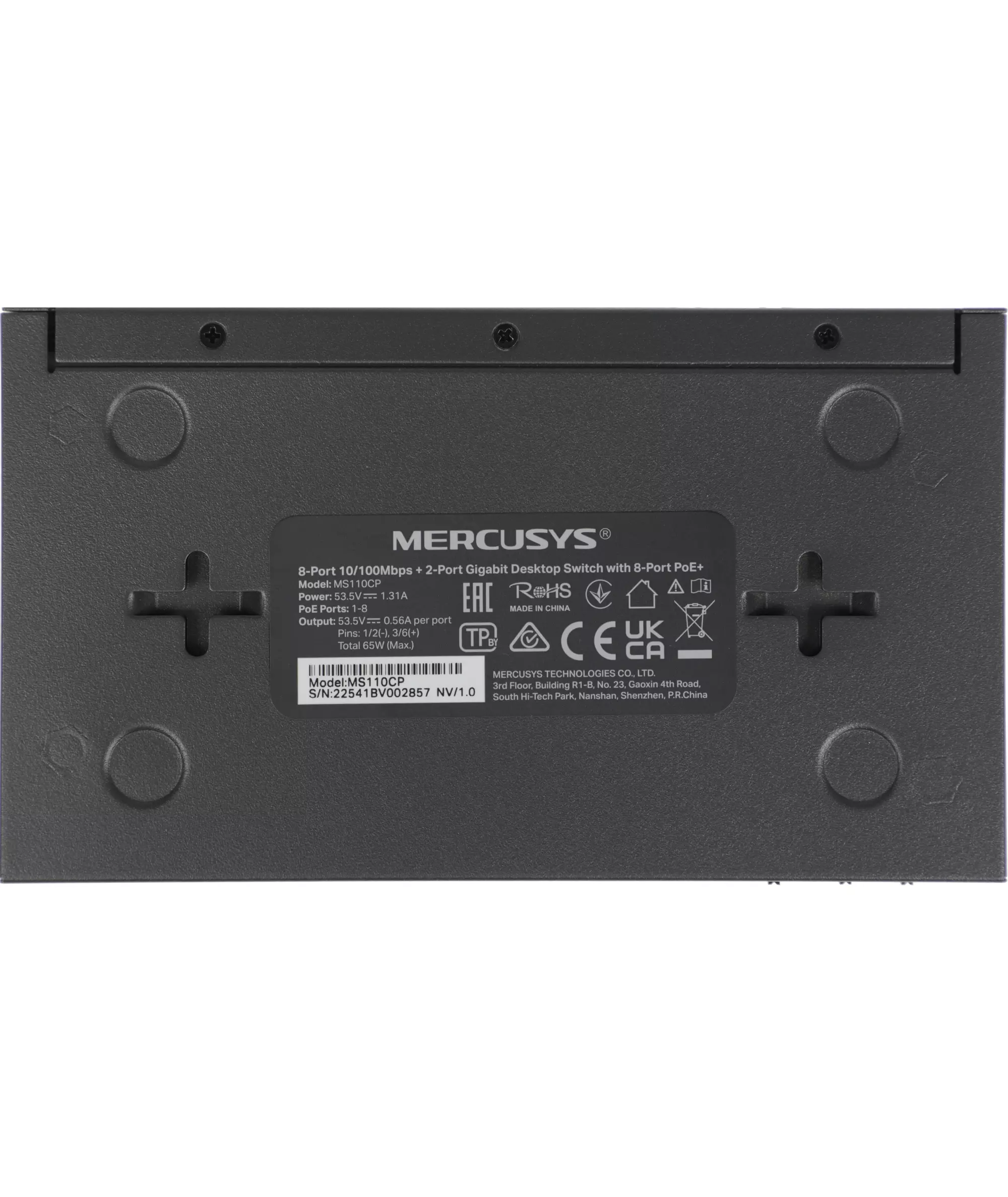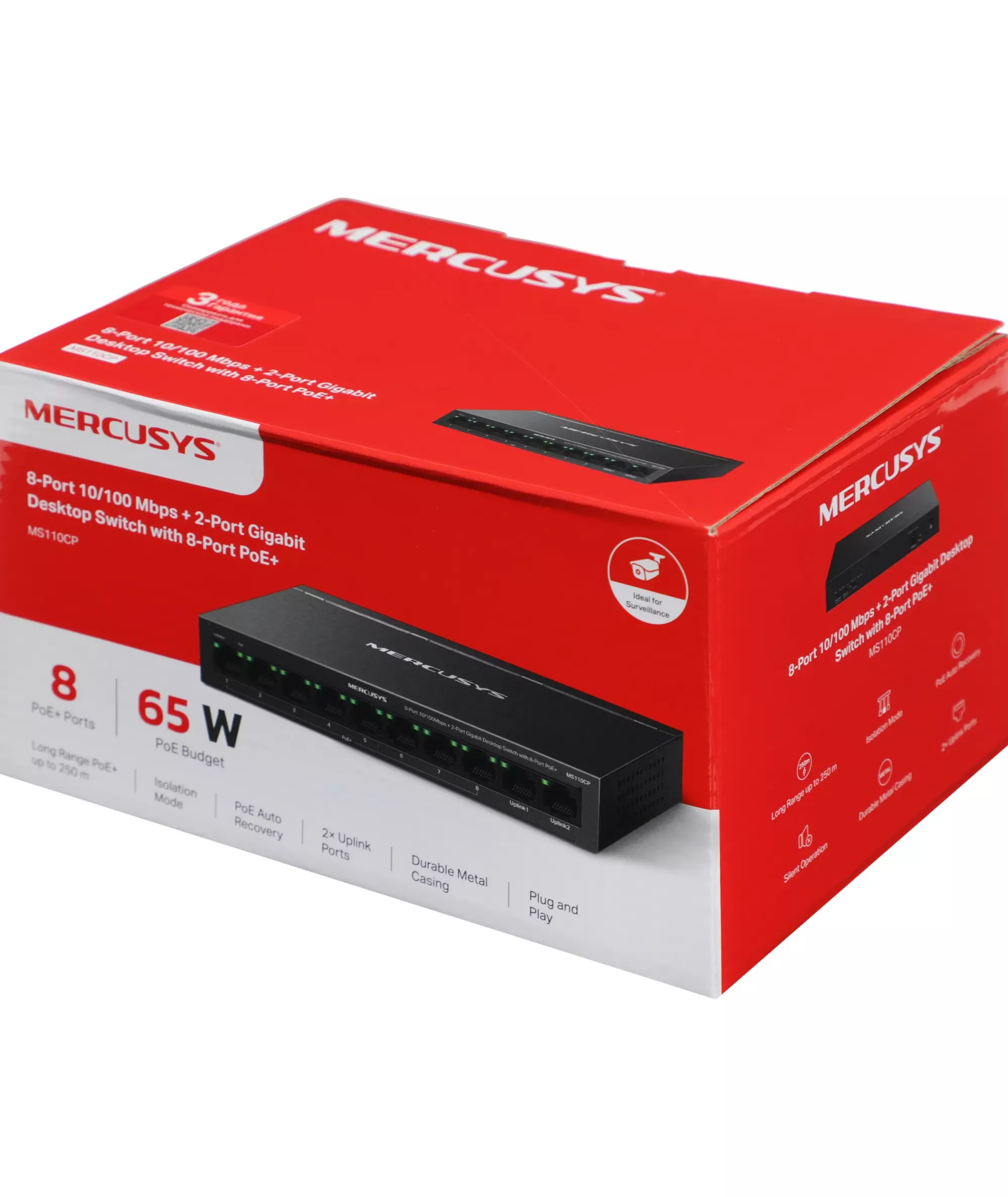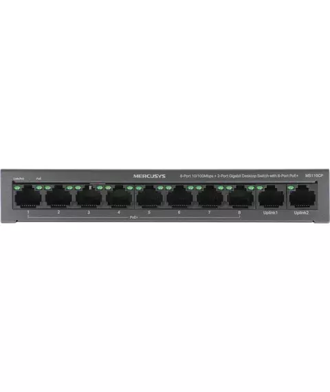Коммутатор Mercusys MS110CP (L2) 8x100Мбит/с 2x1Гбит/с 8PoE+ 65W неуправляемый