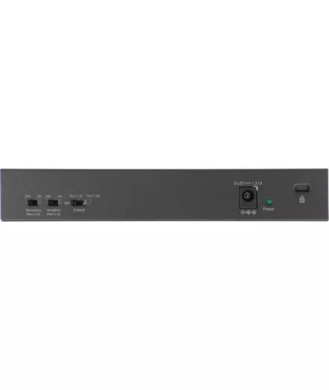 | Особенности | 10 портов: 8 портов PoE+ 10/100 Мбит/c и 2 гигабитных порта без PoE |