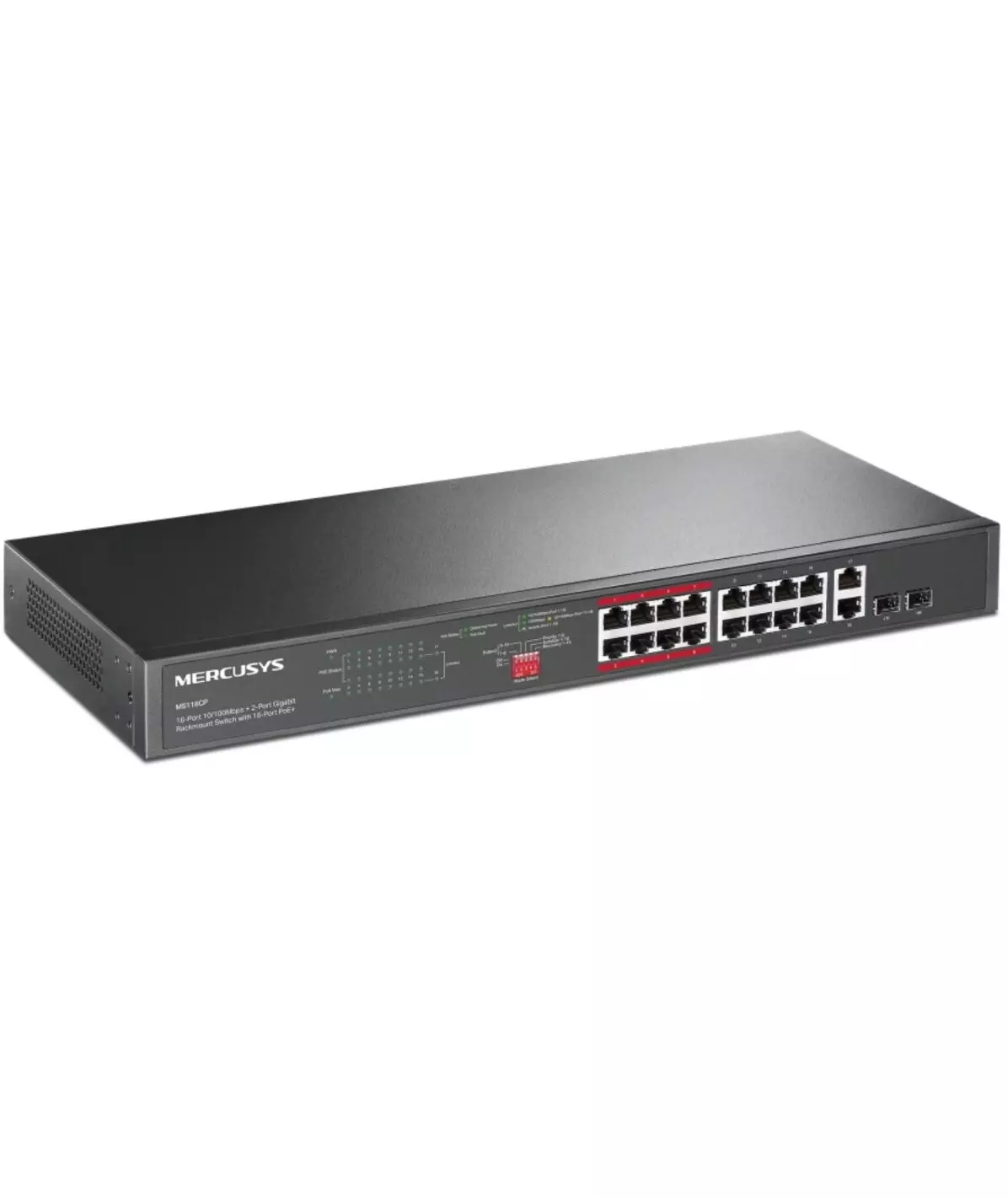 Коммутатор Mercusys MS118CP (L2) 16x100Мбит/с 2x1Гбит/с 2xКомбо(1000BASE-T/SFP) 16PoE+ 190W неуправляемый