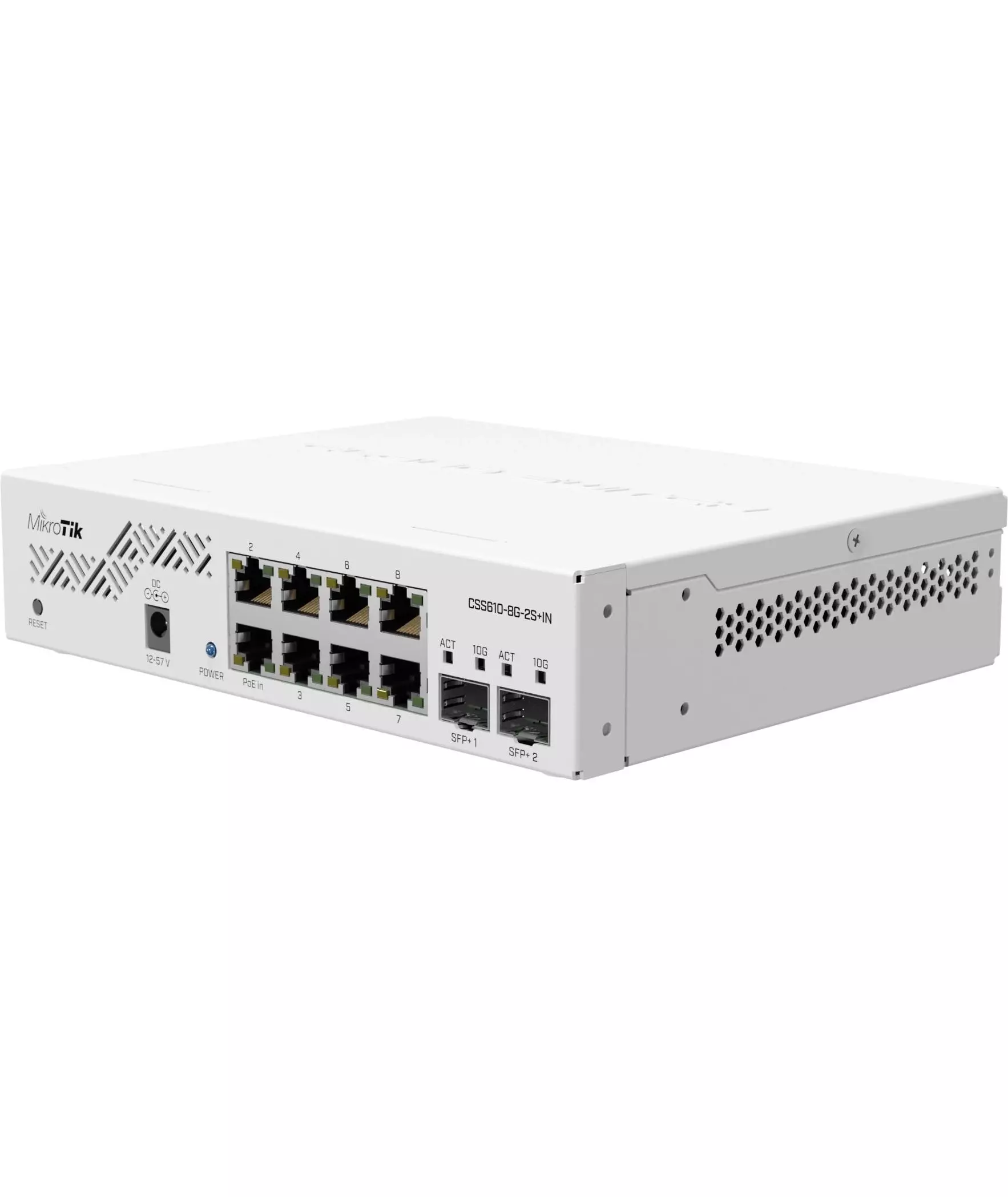 Коммутатор управляемый Mikrotik CSS610-8G-2S+IN Cloud Smart Switch, 10 портов, 8x1 Гбит/с, SFP/uplink SFP+ 2x10 Гбит/с, установка в стойку