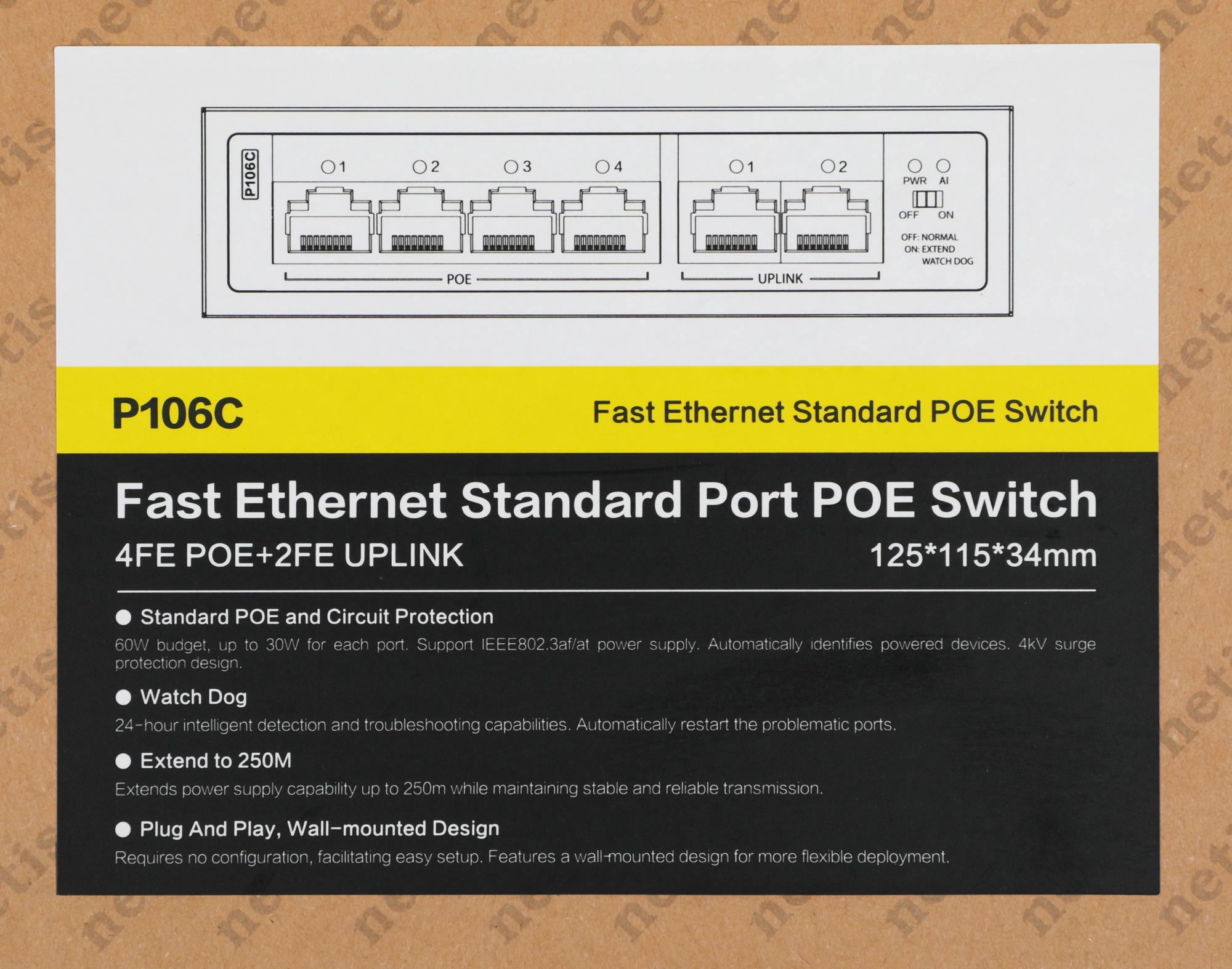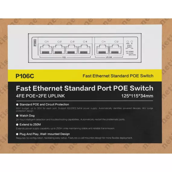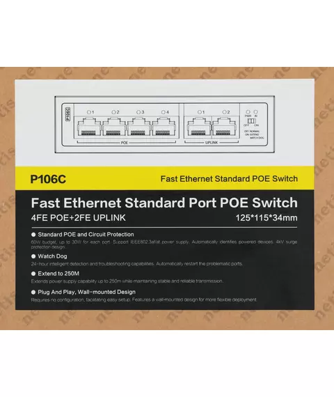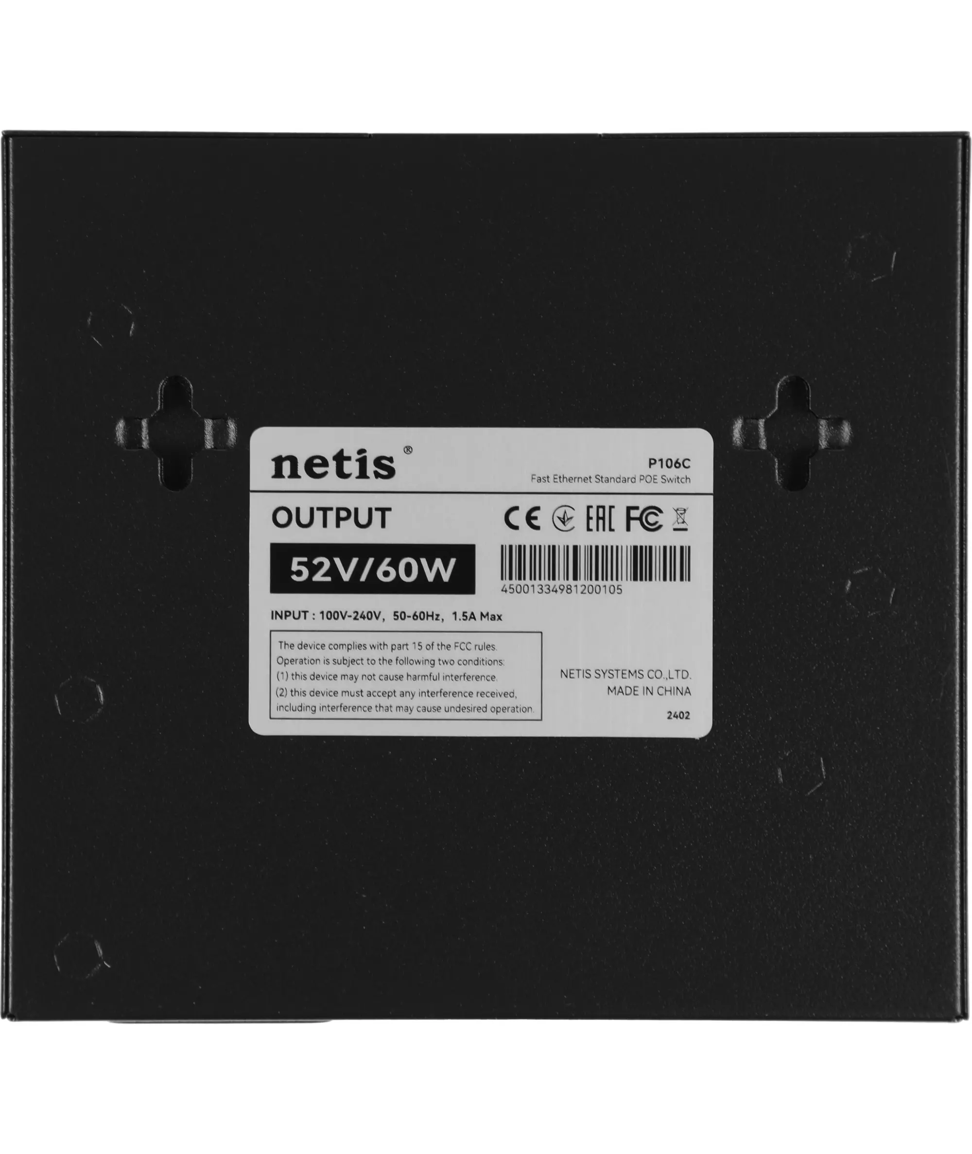 Коммутатор netis P106C (L2) 6x100Мбит/с 4PoE+ 60W неуправляемый