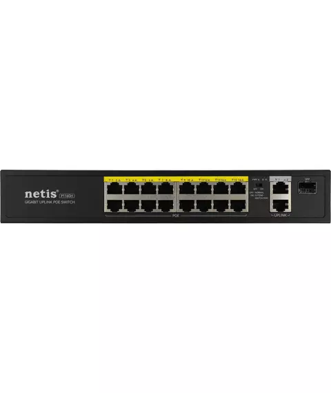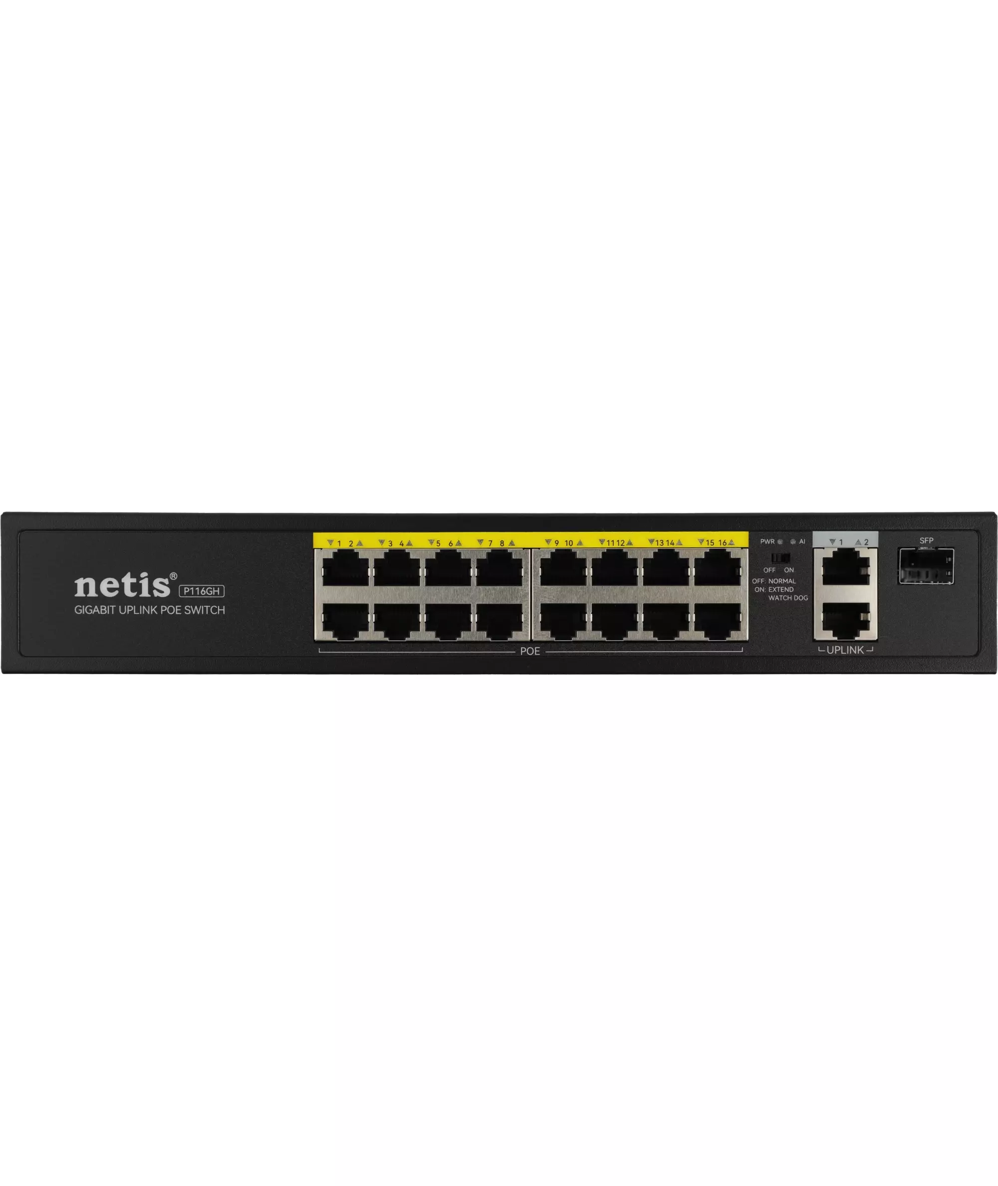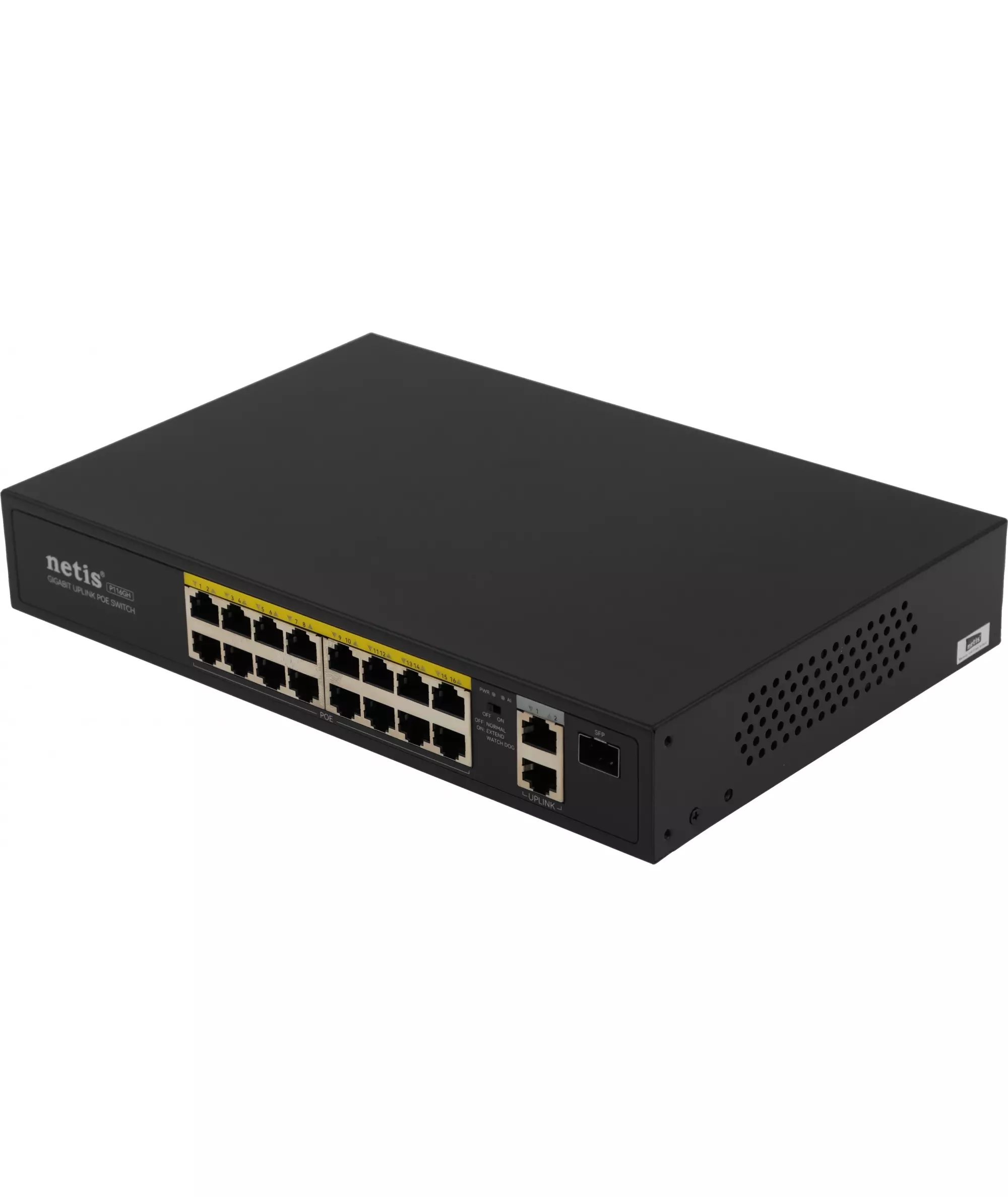 Коммутатор netis P116GH (L2) 16x100Мбит/с 2x1Гбит/с 1SFP 16PoE 16PoE+ 240W неуправляемый