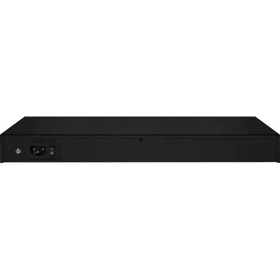 - Порты: 24 x FE (10/100 Base-T) с поддержкой PoE (IEEE 802.3af/at), 2 x GE Combo Uplink (RJ45 + SFP).