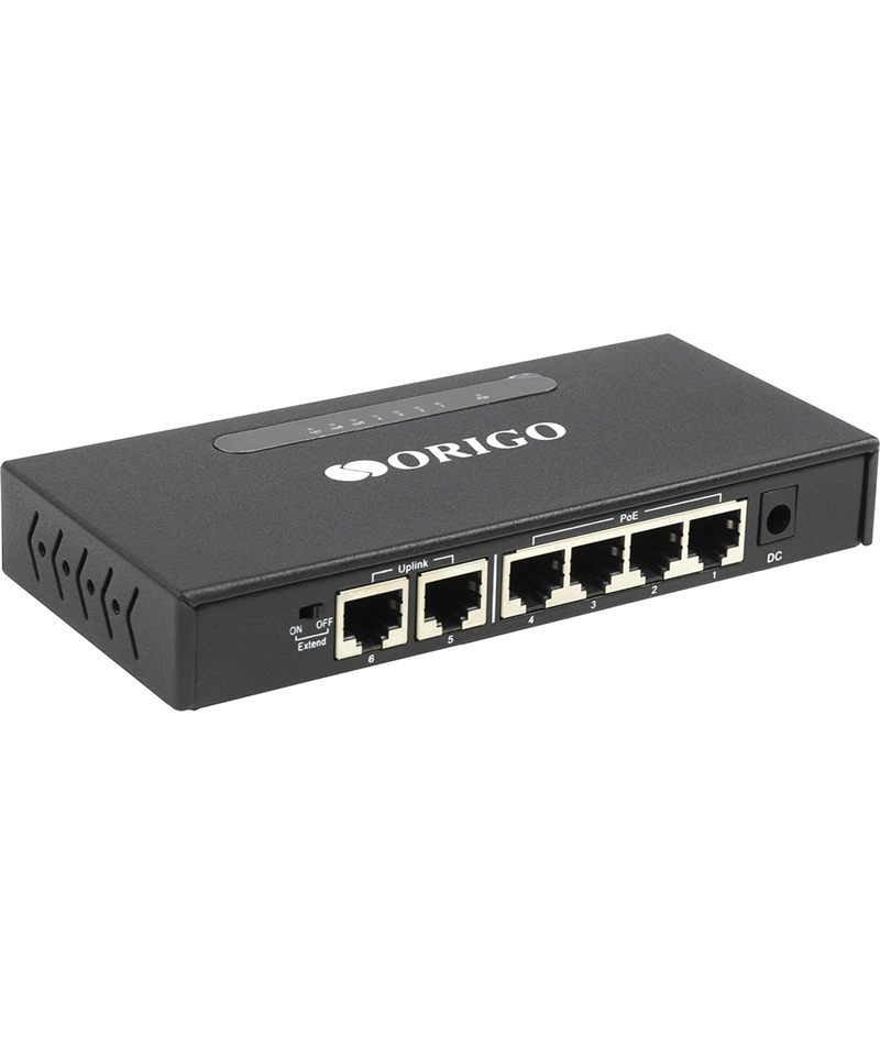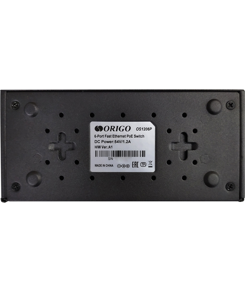 Коммутатор ORIGO OS1206P/60W/A1A Unmanaged Switch 6x100Base-TX (4x100Base-TX PoE), PoE Budget 60W, Long-range PoE up to 250m, metal case