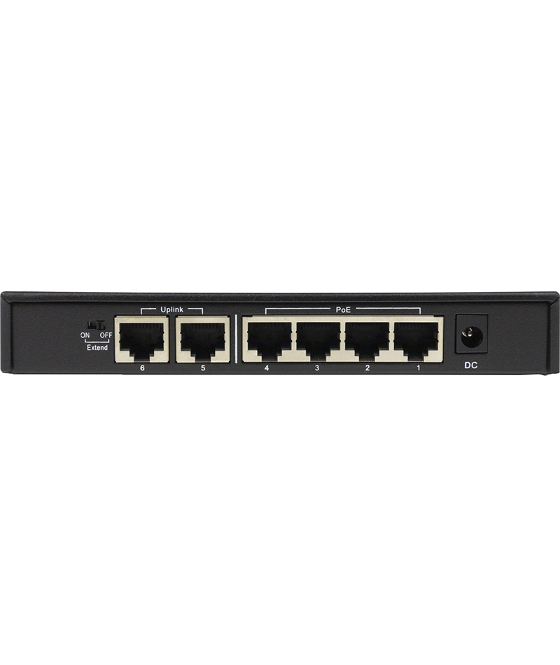 Коммутатор обеспечивает подачу питания до 30 Вт на порт. Максимальный PoE-бюджет на 4 порта составляет 100 Вт, номинальный – 60 Вт. Режим Extend PoE позволяет увеличить дальность передачи данных и питания до 250 м и изолировать трафик PoE-портов с помощью функции VLAN Isolation.