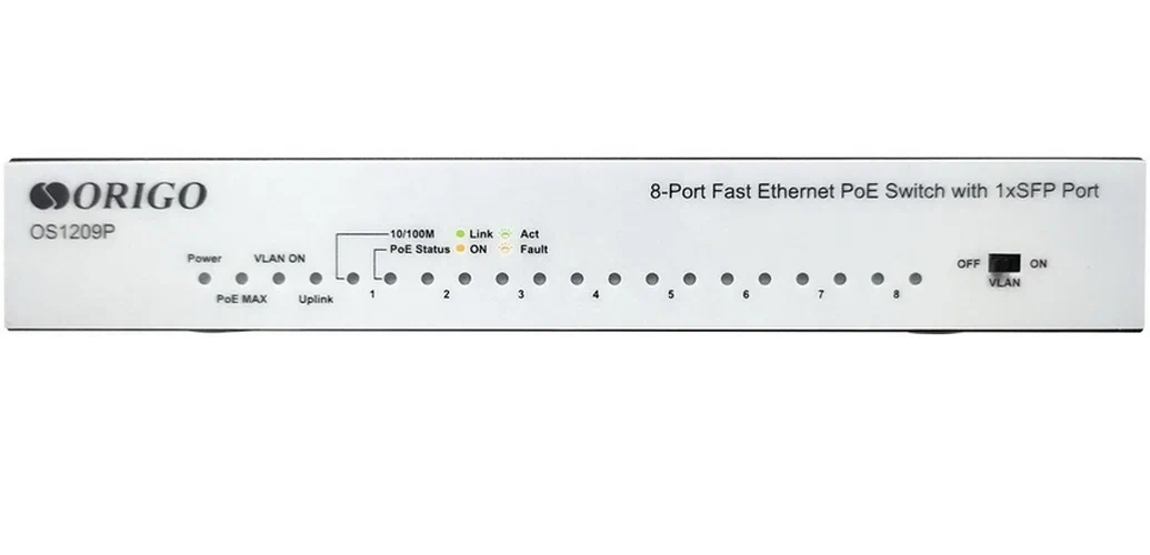 Неуправляемый PoE-коммутатор ORIGO OS1209P/A1A 8x100Base-TX, 1x1000Base-X SFP