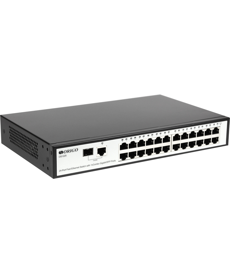 Коммутатор неуправляемый ORIGO OS1225/A1A 24x100Base-TX, 1xCombo 1000Base-T/SFP, metal case, 19" w/brackets