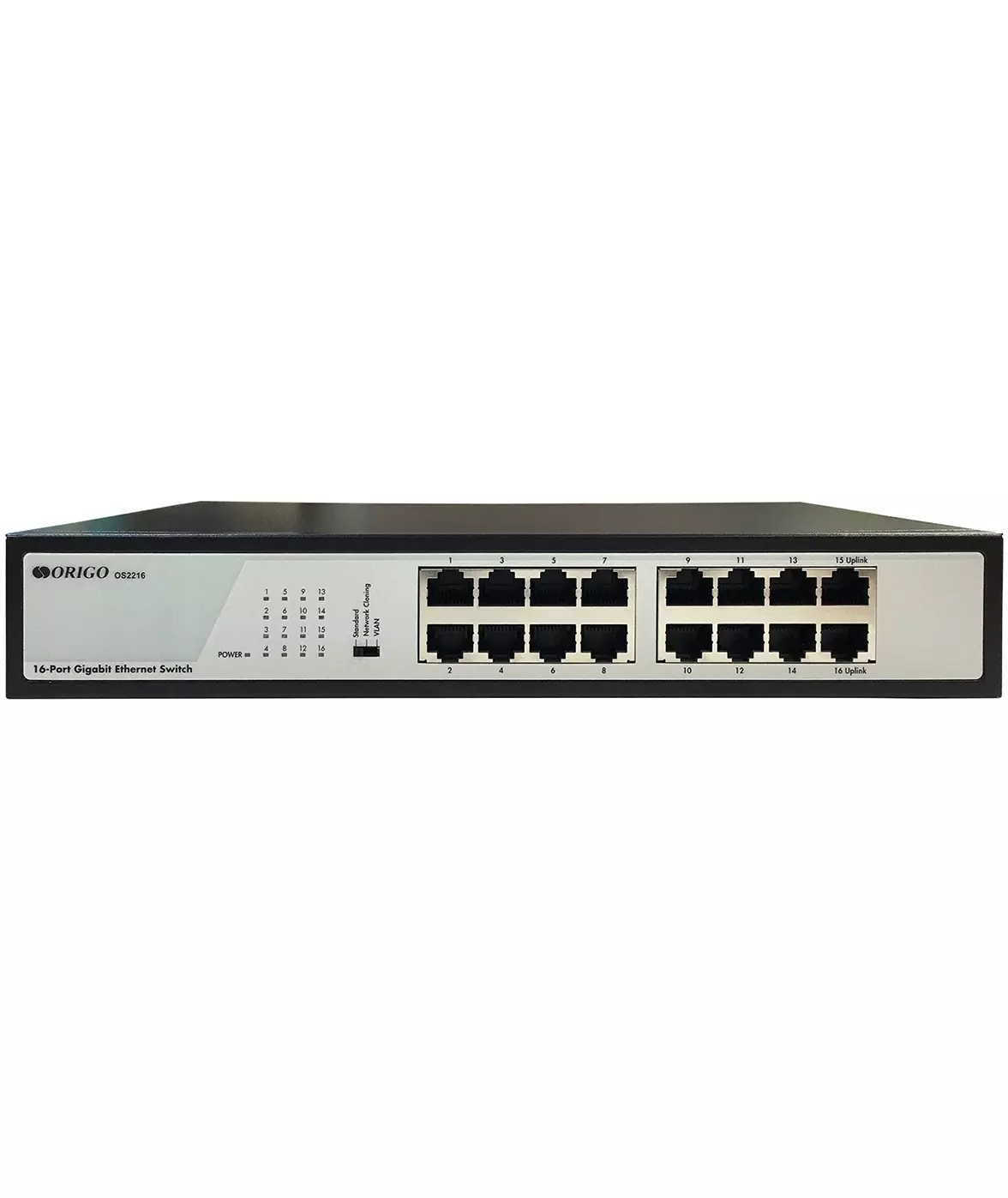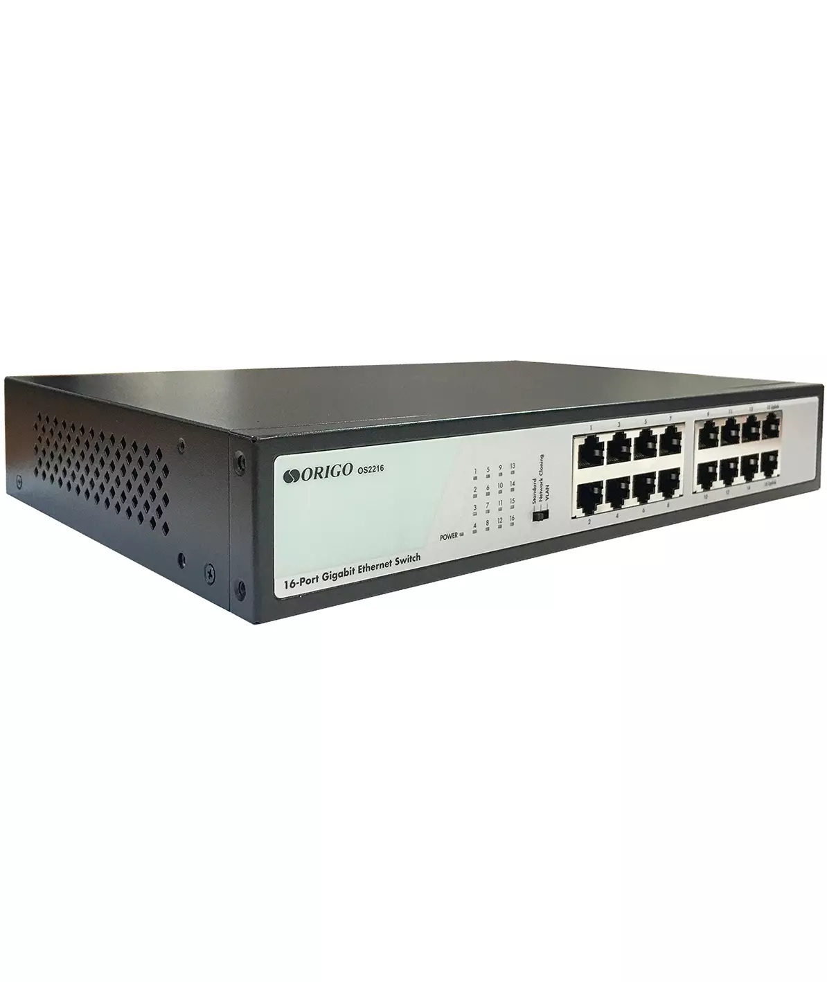 Неуправляемый коммутатор ORIGO OS2216/A1A 16x1000Base-T, комплект для установки в 19" стойку