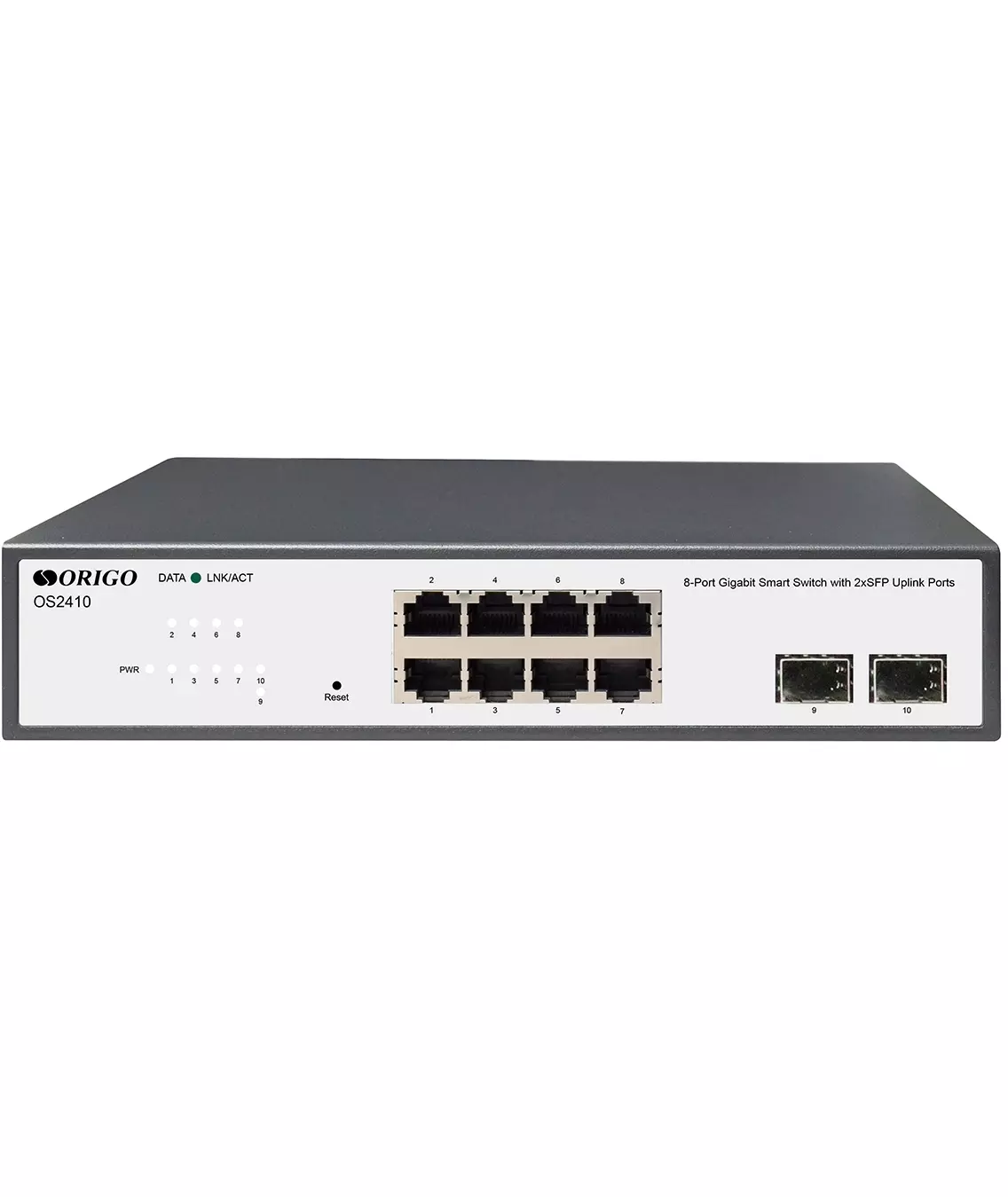 Настраиваемый L2 коммутатор ORIGO OS2410/A1A 8x1000Base-T, 2x1000Base-X SFP, комплект для установки в 19 стойку