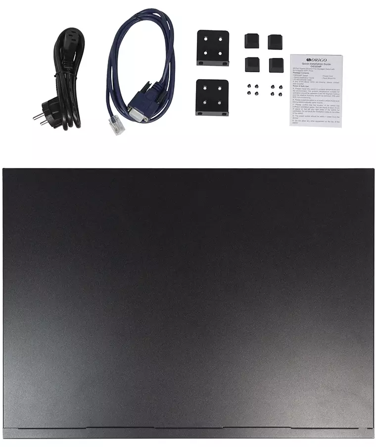 | Комплектация | Коммутатор OS3254P, кабель питания, консольный кабель с разъемом RJ-45, комплект для установки в 19-дюймовую стойку, краткое руководство по установке. |