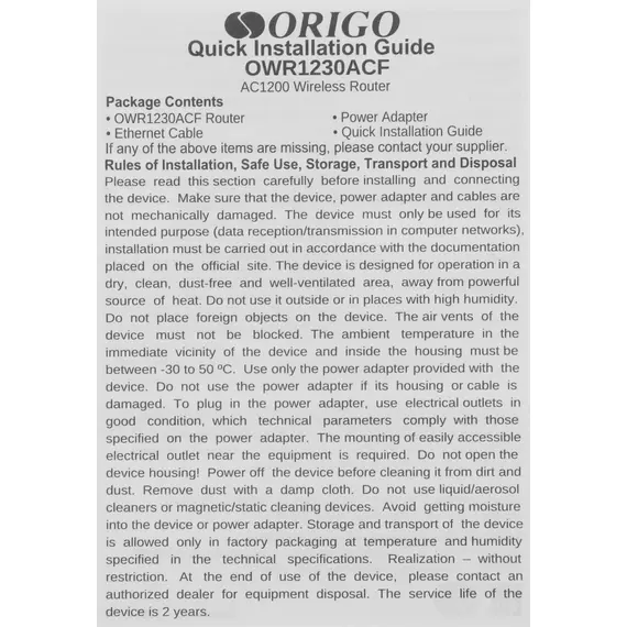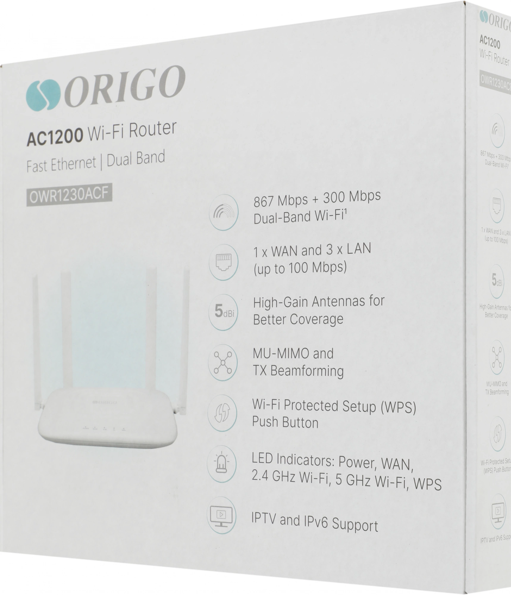 | Комплектация | Маршрутизатор OWR1230ACF, адаптер питания, Ethernet-кабель, краткое руководство по установке. |