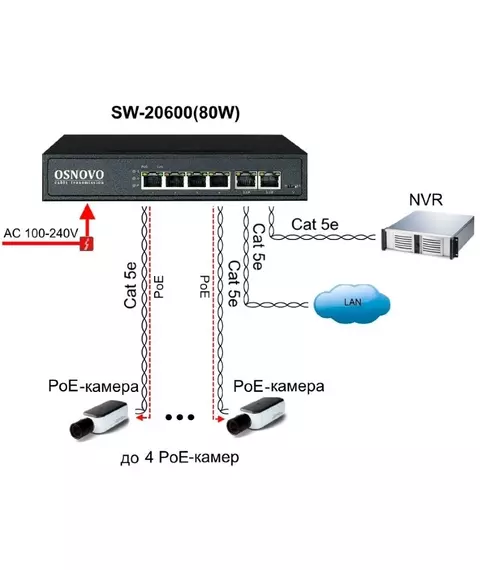 Коммутатор Osnovo SW-20600(80W) 4PoE 80W