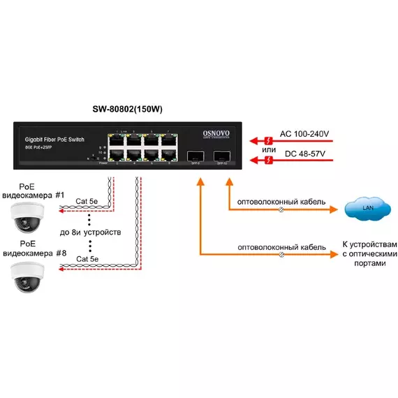 Коммутатор Osnovo SW-80802(150W) 150W неуправляемый