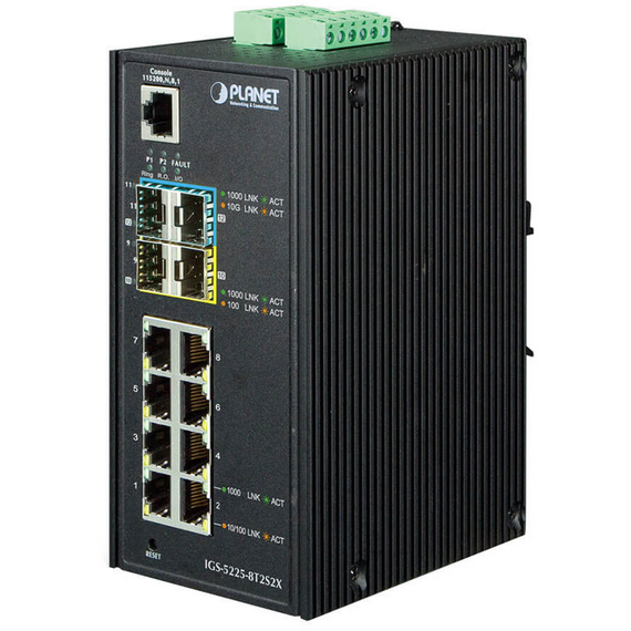 Коммутатор Planet IGS-5225-8P4S IP30 Industrial L2+/L4 8-Port 1000T 802.3at PoE+ 4-port 100/1000X SFP Full Managed