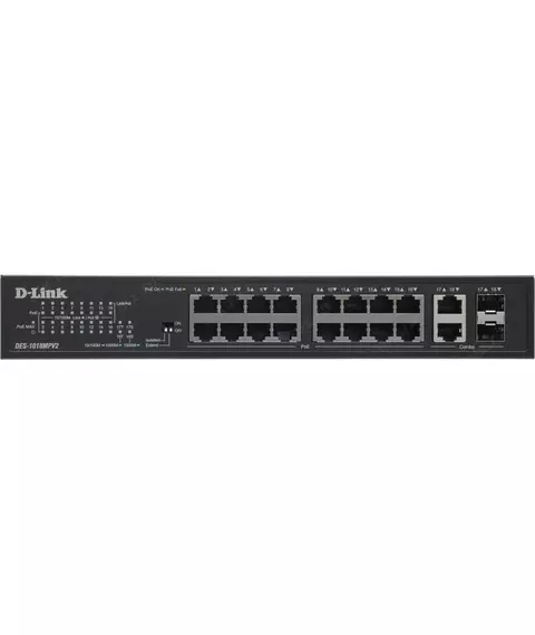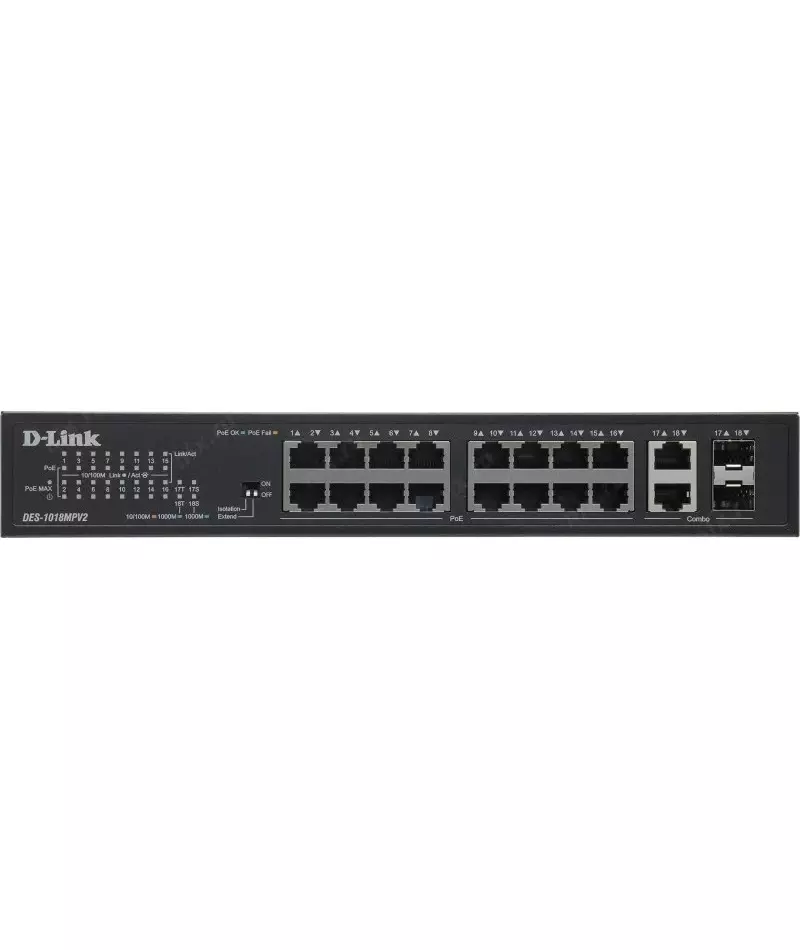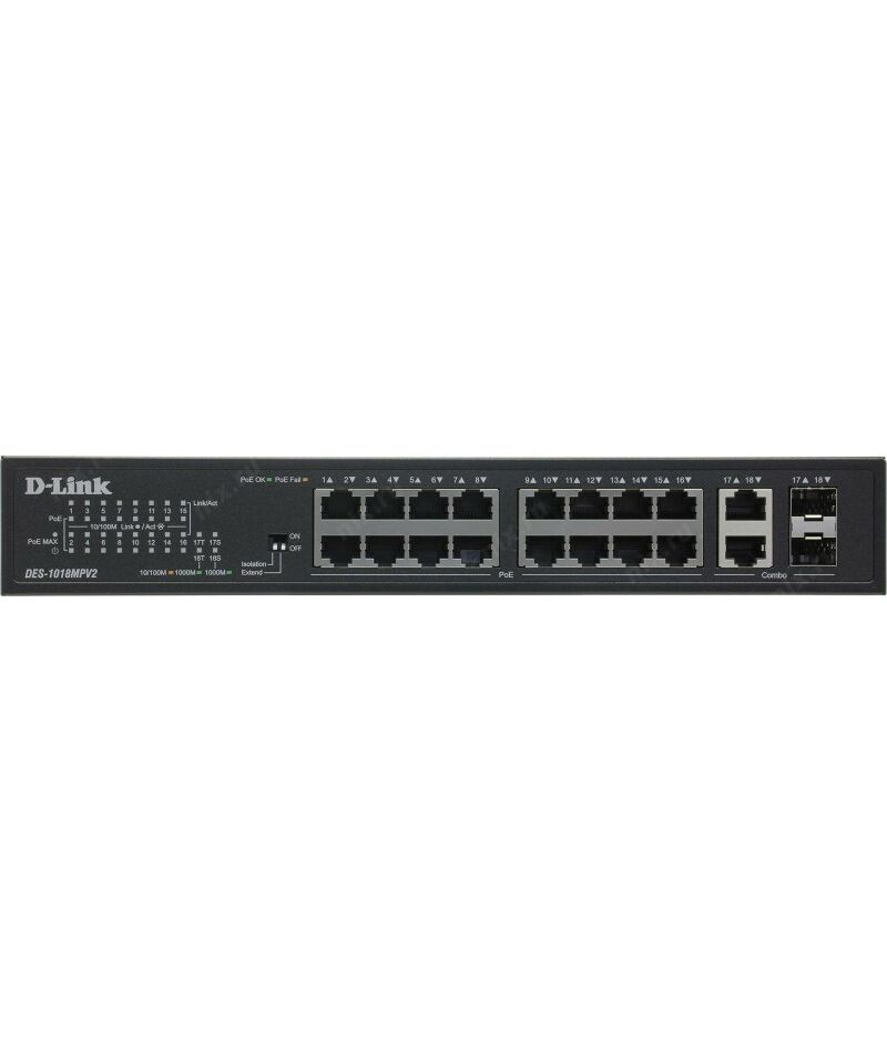 Неуправляемый коммутатор D-link DES-1018MPV2 /A1A 16UTP 100Mbps PoE + 2Combo 1000BASE-T/SFP