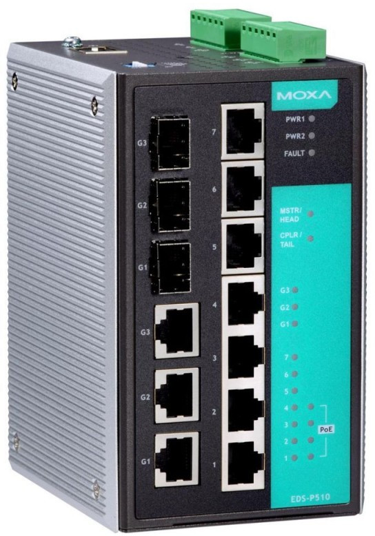 Промышленный 10-портовый управляемый коммутатор MOXA EDS-P510-T 7 x 10/100BaseTX, 3 x Combo Gigabit с функцией Power Over Ethernet [EDS-P510-T]