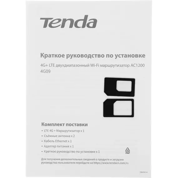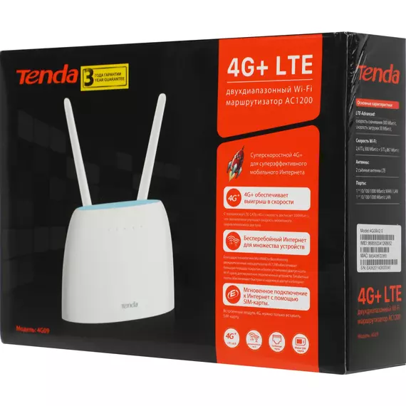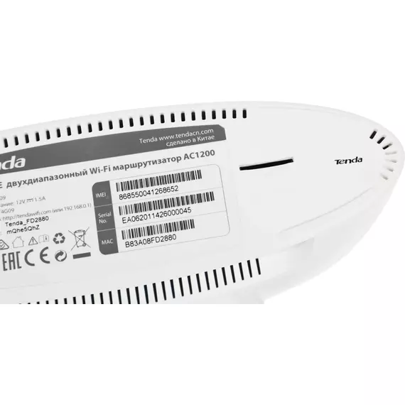Роутер беспроводной TENDA 4G09 AC1200 10/100/1000BASE-TX/4G cat.6 белый