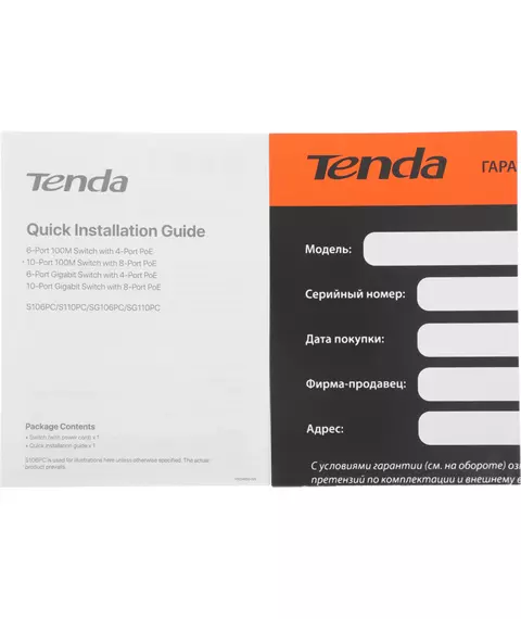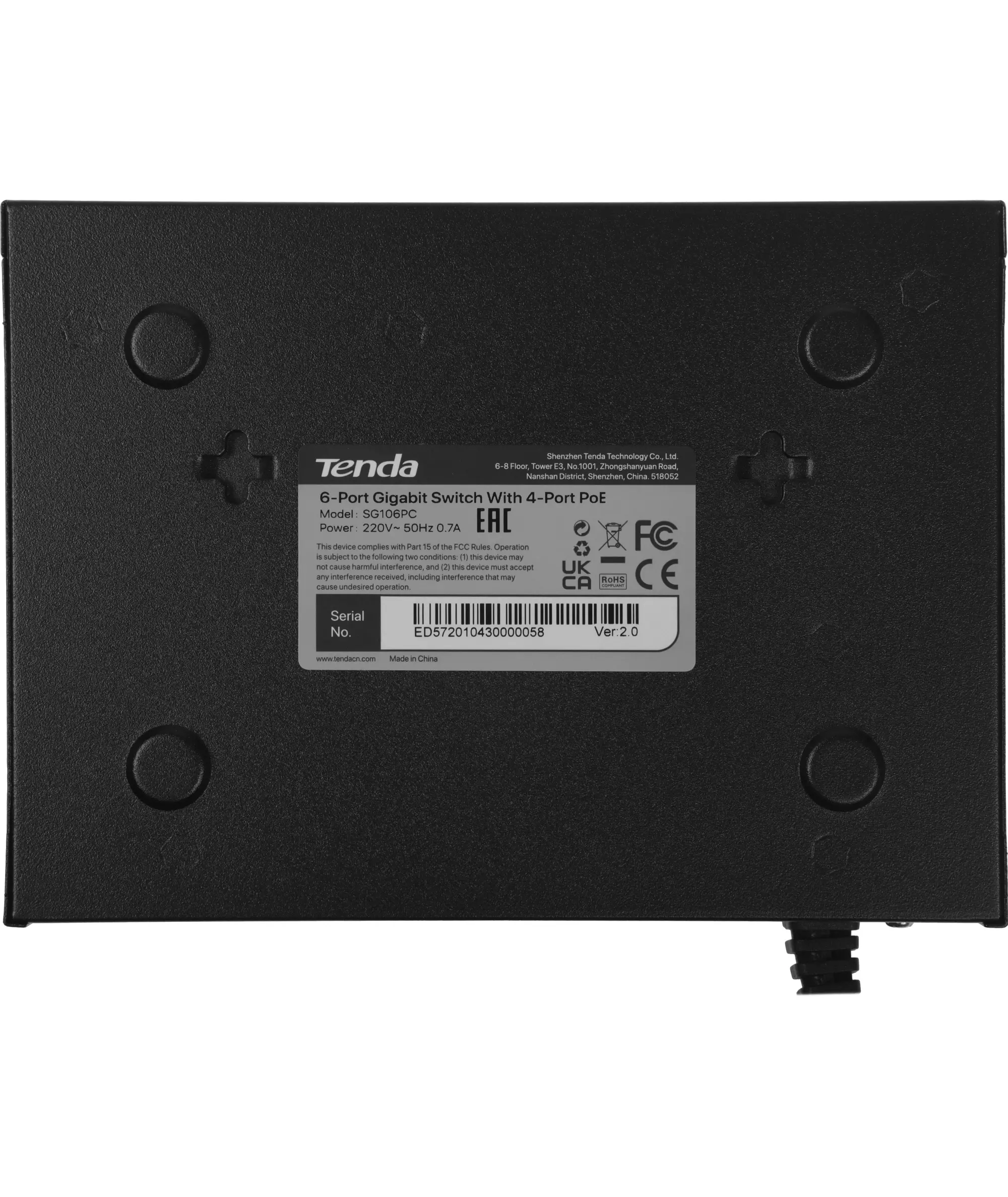 Коммутатор TENDA SG106PC (L2) 6x1Гбит/с 4PoE 50W неуправляемый