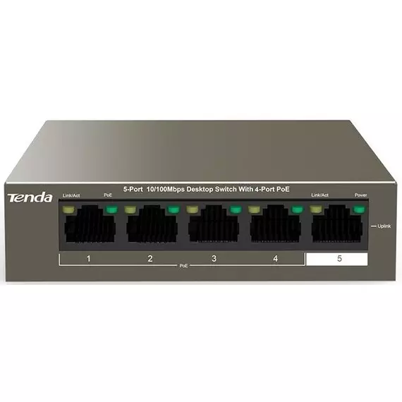 Коммутатор TENDA TEF1105P-4-63W (L2) 5x100Мбит/с 4PoE 58W неуправляемый
