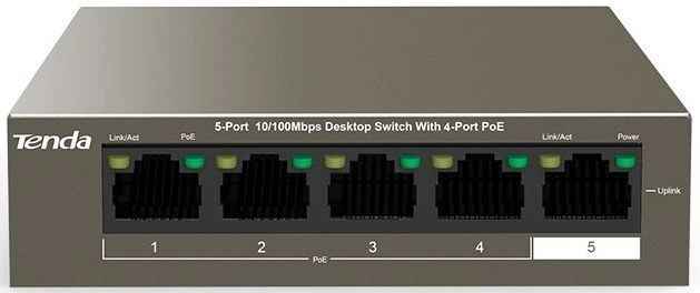Коммутатор TENDA TEF1105P-4-63W (L2) 5x100Мбит/с 4PoE 58W неуправляемый
