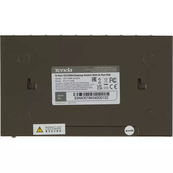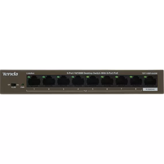 Коммутатор TENDA TEF1109P-8-63W 9x100Мбит/с 8PoE 58W неуправляемый