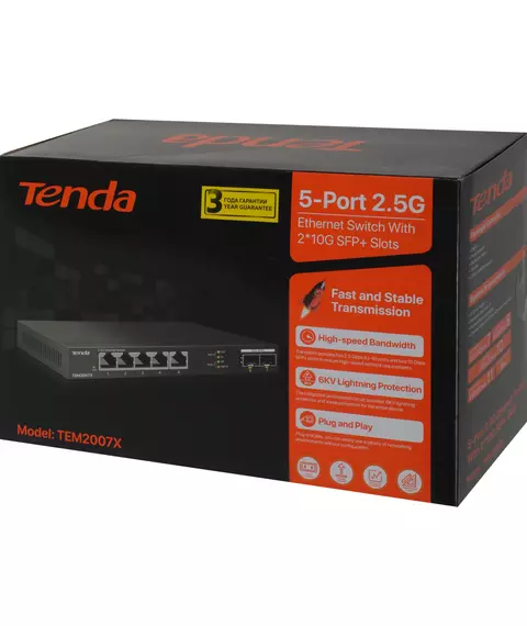 Коммутатор TENDA TEM2007X (L2) 5x2.5Гбит/с 2SFP+ неуправляемый