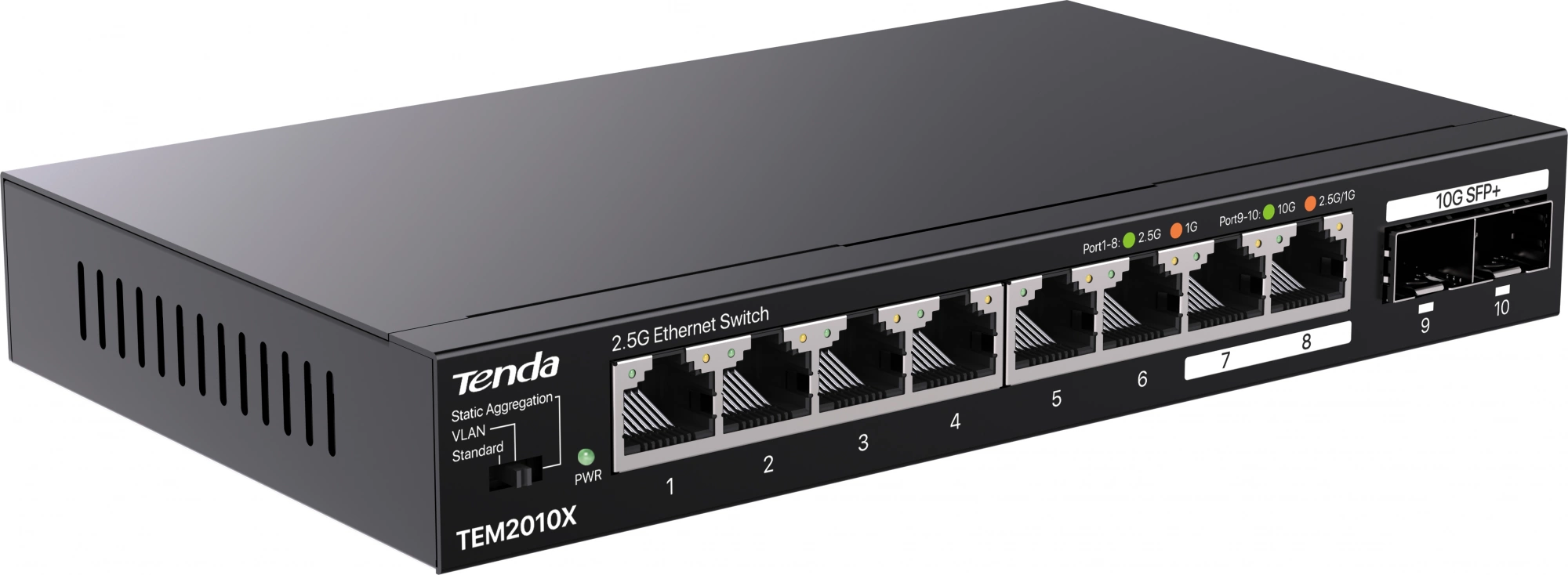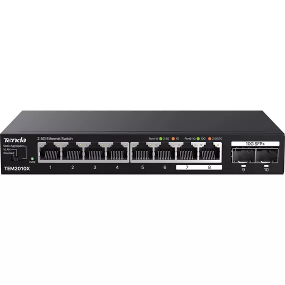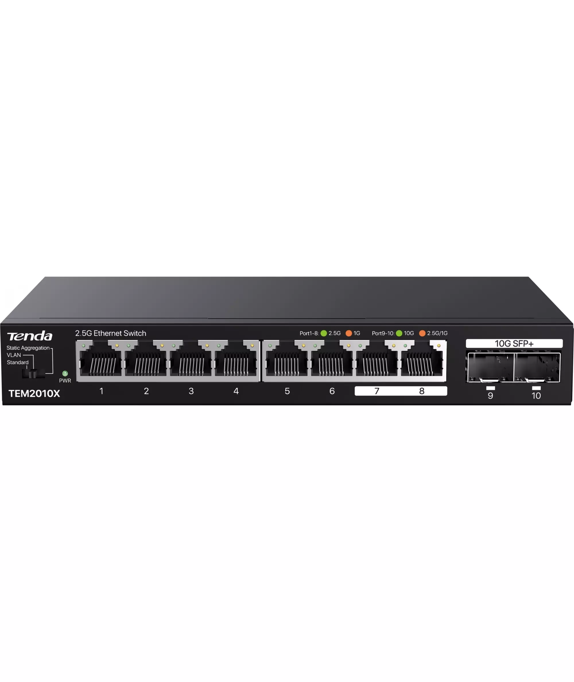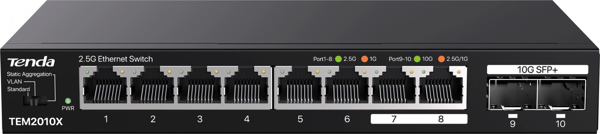 Коммутатор TENDA TEM2010X (L2) 8x2.5Гбит/с 2SFP+ неуправляемый