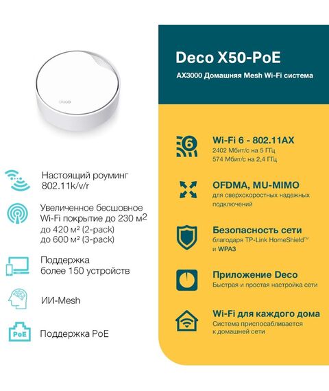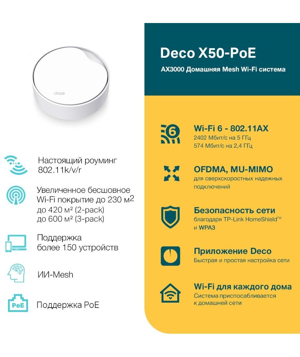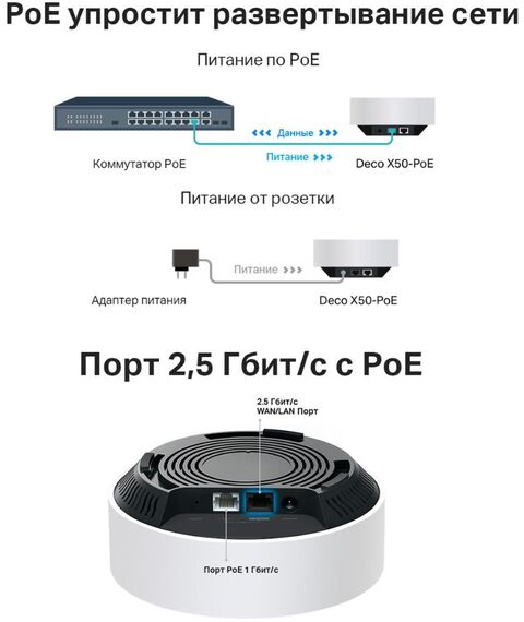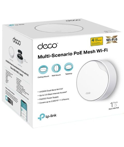 Бесшовный Mesh роутер TP-Link Deco X50-PoE(1-pack) AX3000 1000/2500BASE-T белый