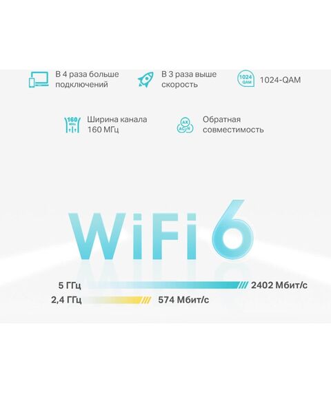 | Скорость 802.11ax, 2.4 ГГц | 574 Мбит/с |