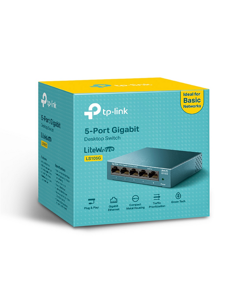Коммутатор TP-Link LS105G 5х10/100/1000Mbps RJ-45, metal shell, desktop and wall mountable, plug and play, support 802.1p QoS, power saving