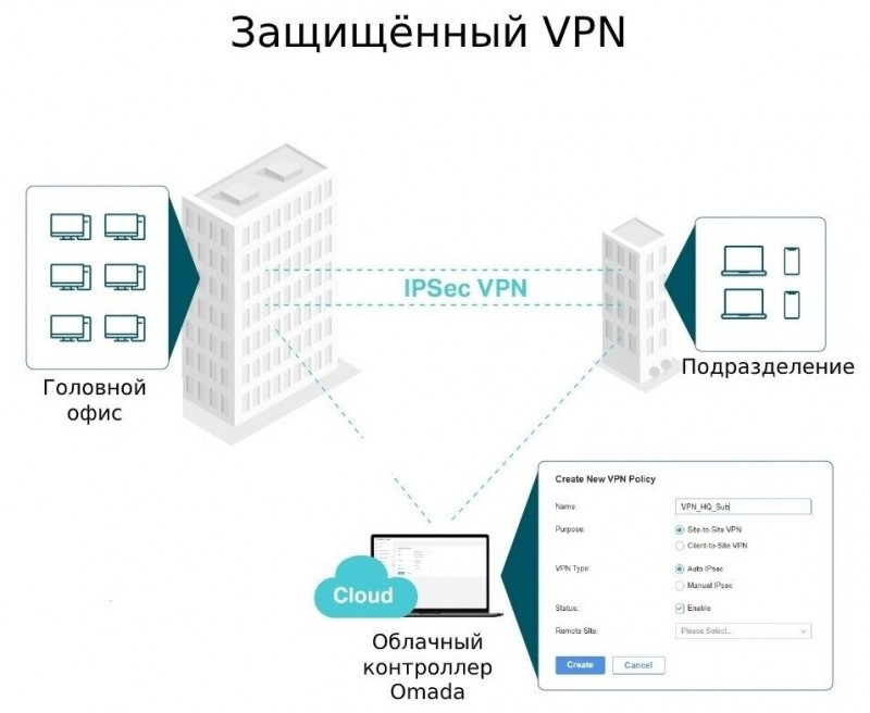 - Кол-во VPN соединений: до 100 туннелей IPSec, до 50 туннелей L2TP, до 50 туннелей PPTP