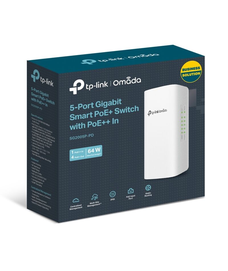 Коммутатор Smart линейки Omada с 5 гигабитными портами (1 порт с входящим PoE++, 4 порта с исходящим PoE+)